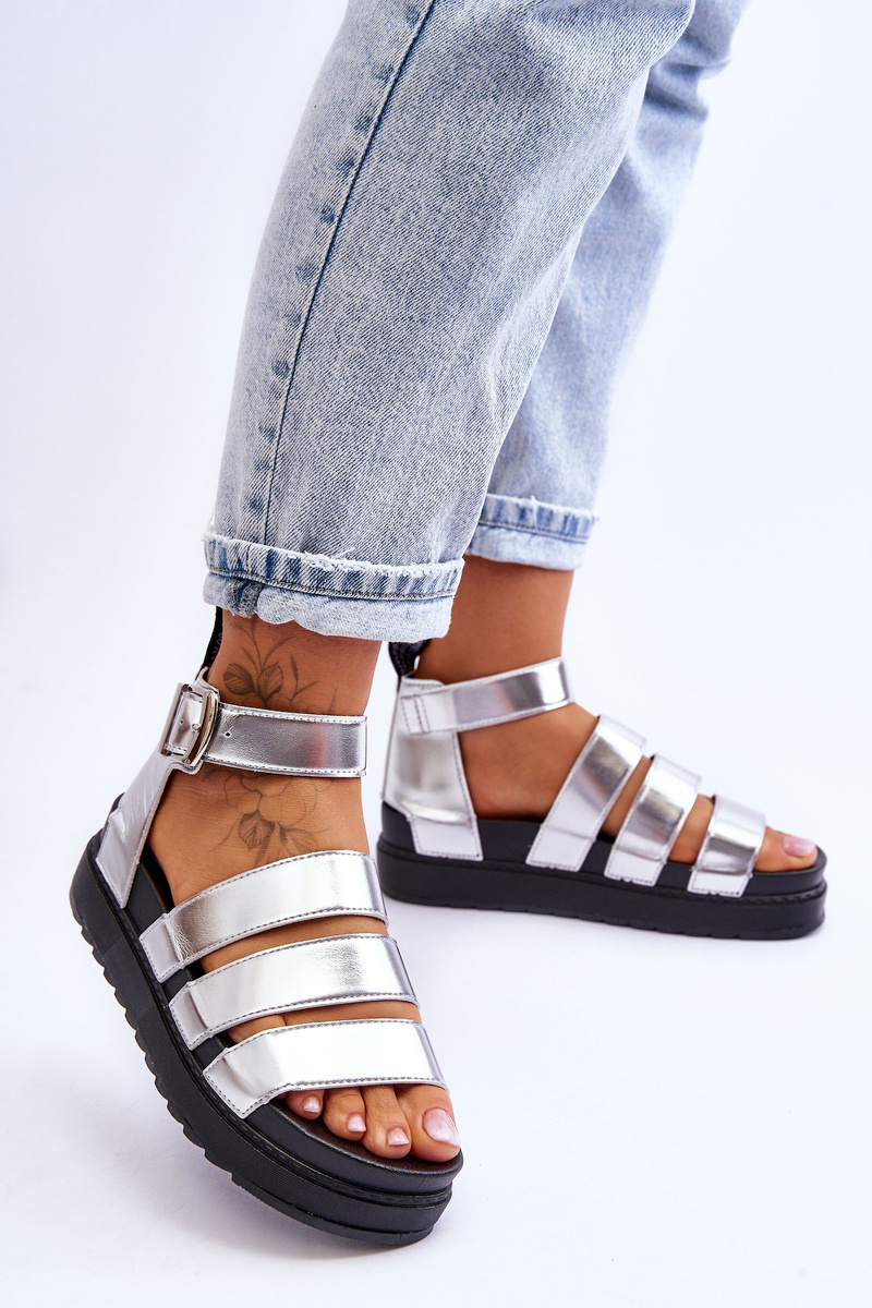 Veľké ženské sandále s vyšším zvrškom. Boli vyrobené z ekologickej kože. Tento model má obrovskú platformu, na ktorej sú umiestnené topánky. Sandále sú skvelé v horúcich dňoch. Na prednej strane sú pruhy, ktoré držia nohu pred pohybu. Tento model je pripevnený nastaviteľným pásom s prackou. Pri výbere veľkosti navrhnite tabuľku veľkosti. /p>