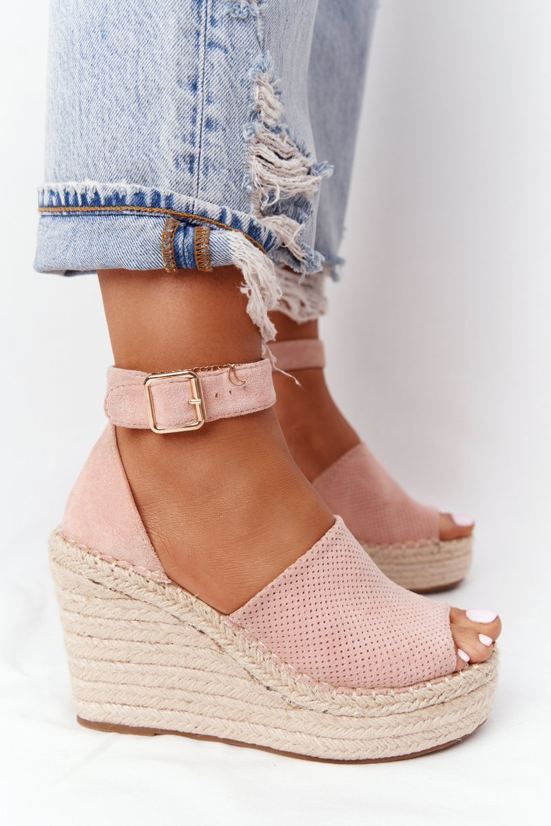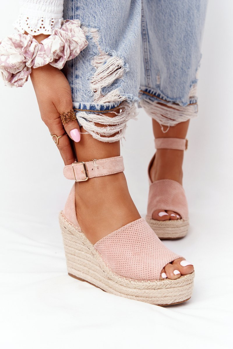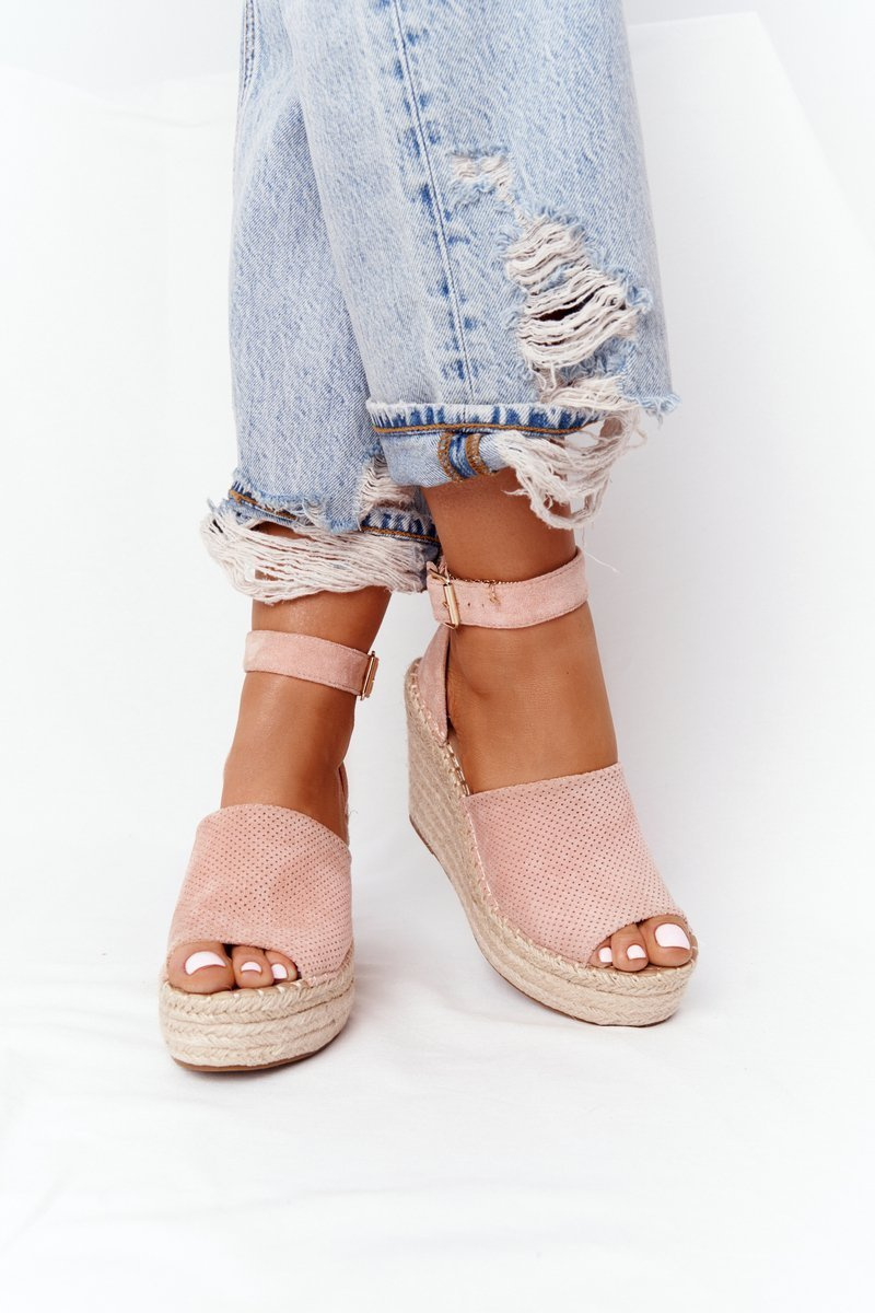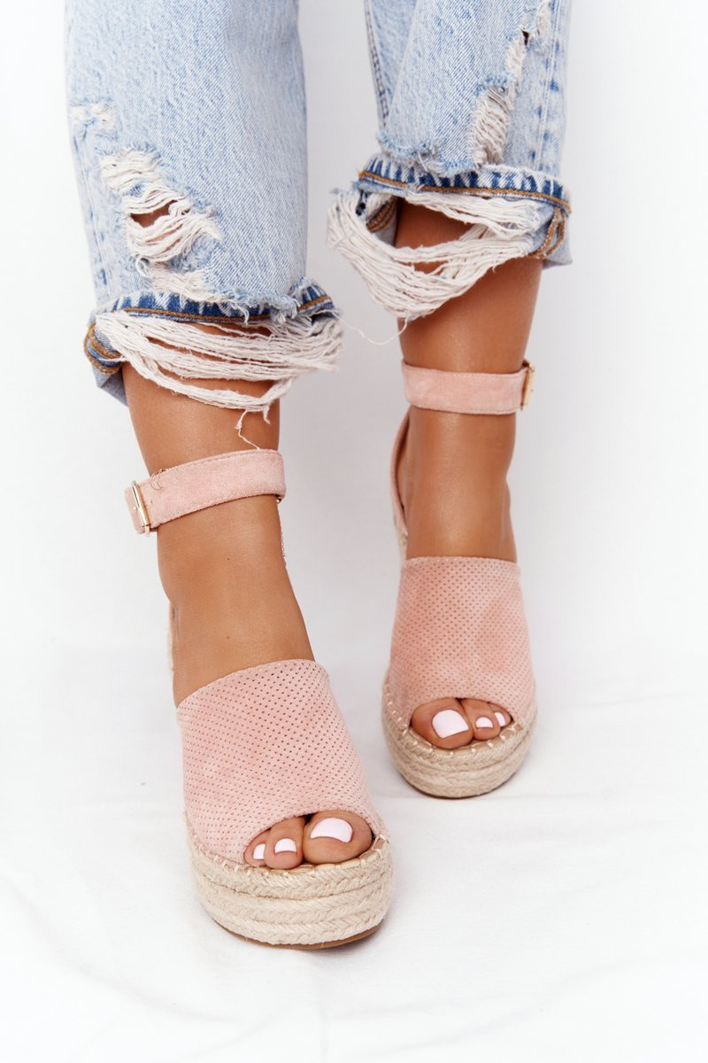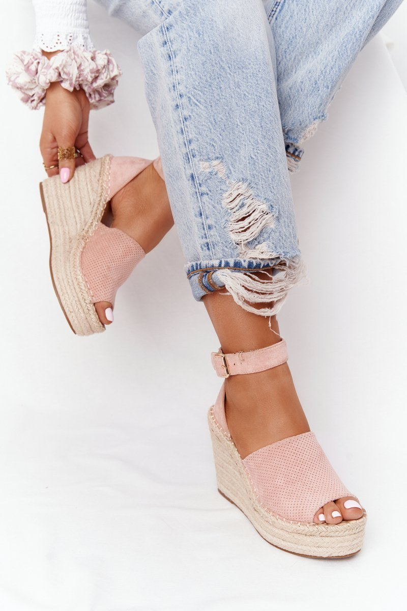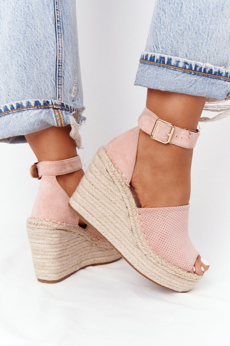 Krásne a pohodlné klinové sandále vyrobené z ekologického semišu. Topánky majú podrážky, ktoré nie sú k dispozícii a mäkká ekologická kožená vložka. Nezabudnite skontrolovať celú našu zbierku ženských sandálov! Pri výbere veľkosti navrhnite tabuľku veľkosti.