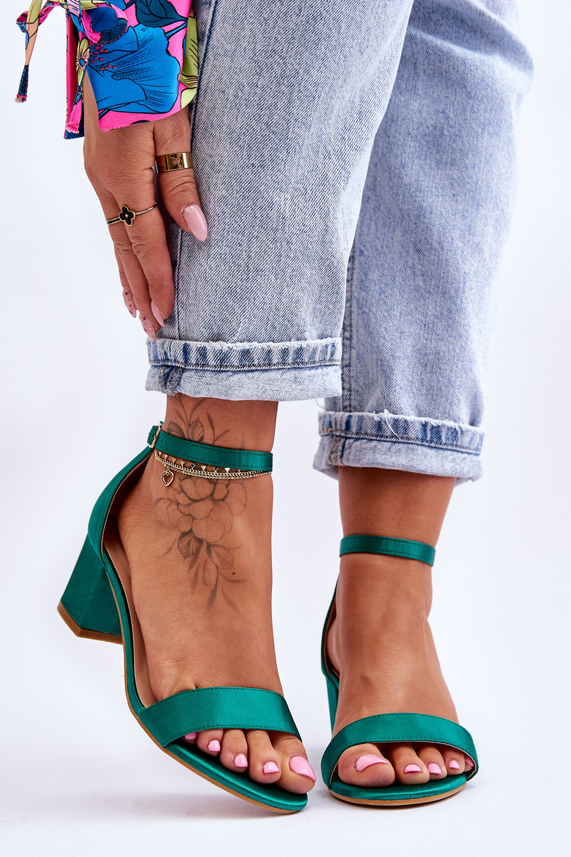 Dámske sandále boli vyrobené z textilného materiálu napodobňujúceho satén. Boli vložení na päty vo forme stabilného stĺpika. Majú otvorený, zaoblený nos a zakrytú pätu so stuhnutou pätou. Pripevnený nastaviteľným pásom s prackou umiestnenou vo výške členku. Eco Leather Insert zabezpečí pohodlné použitie. Pri výbere veľkosti navrhnite tabuľku veľkosti. /p>