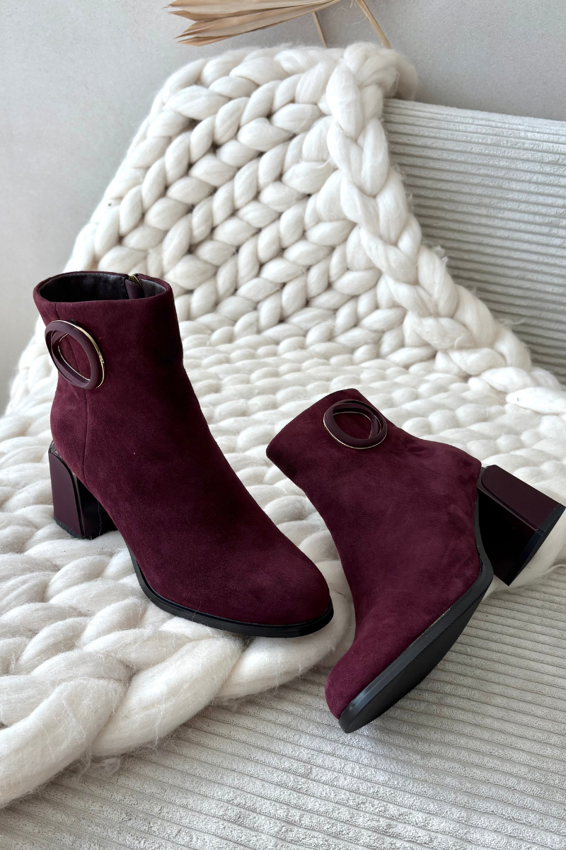 Semišové čižmy na opätku s podšívkou s ozdobným detailom Artiker 57C0016 Bordová