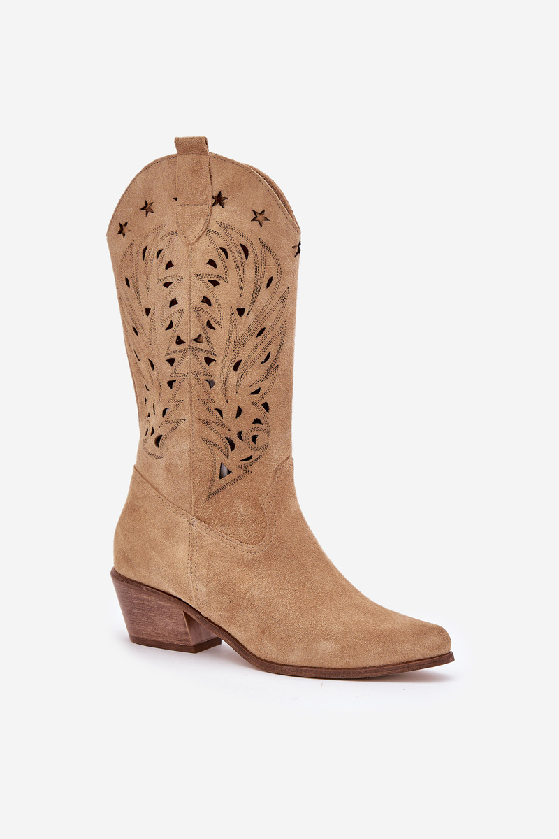Semišové čižmy s perforovaným zvrškom Béžové Zazoo 3714