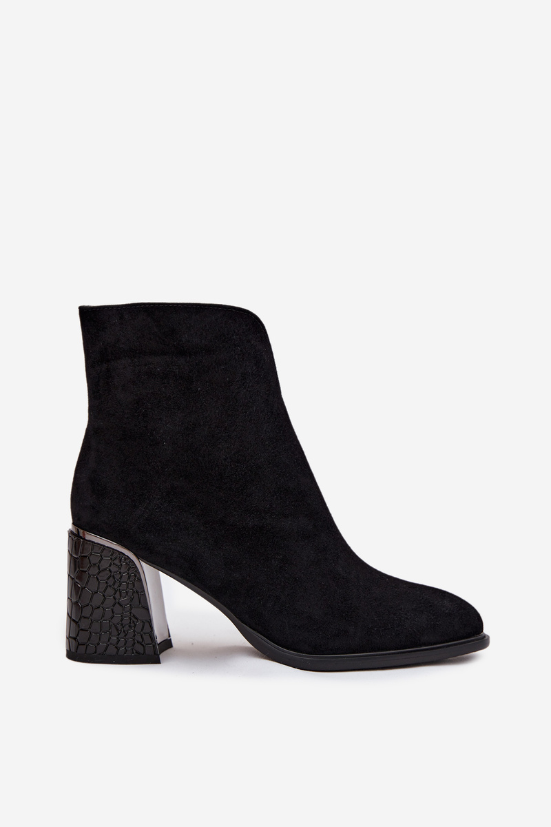 Semišové dámske členkové topánky na opätku s reliéfom zateplené Vinceza 66801 čierne
