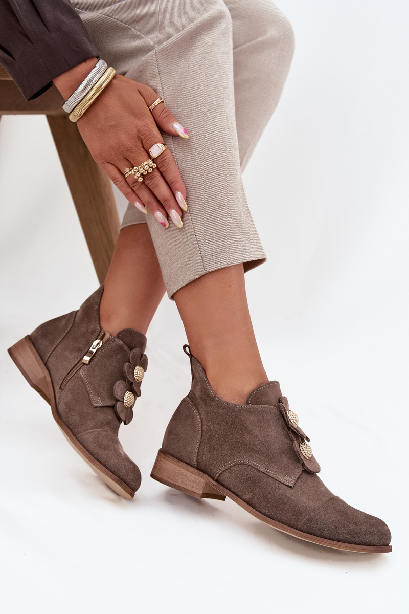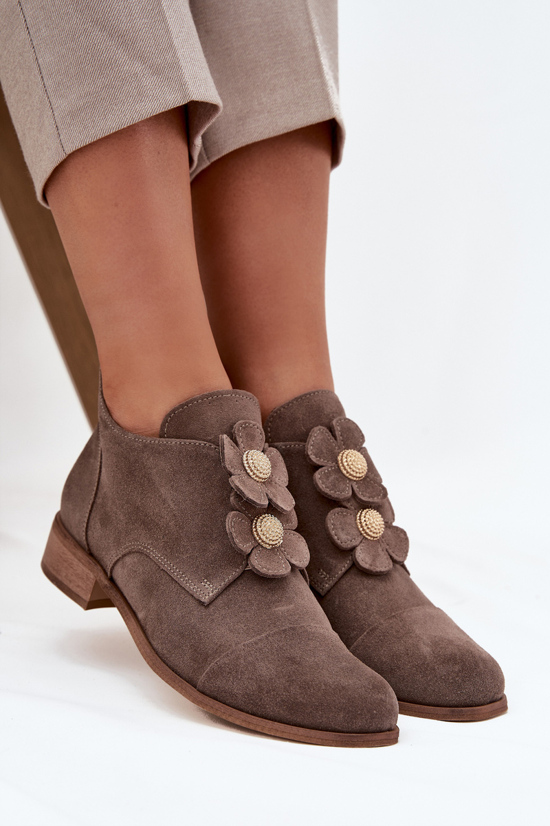Semišové dámske poltopánky s ozdobnými kvetmi Zazoo 3080 tmavohnedé