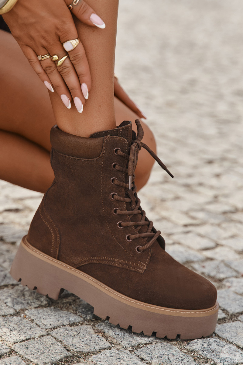 Semišové dámske pracovné čižmy s šnúrkami Big Star SS274792 hnedé