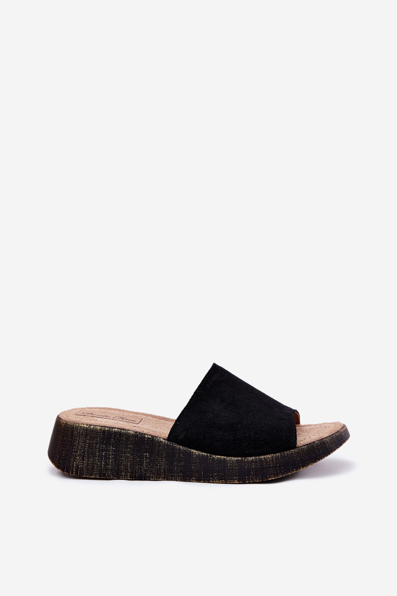Semišové Dámske Sandále Na Klíne Panto Fino Čierne RR267043