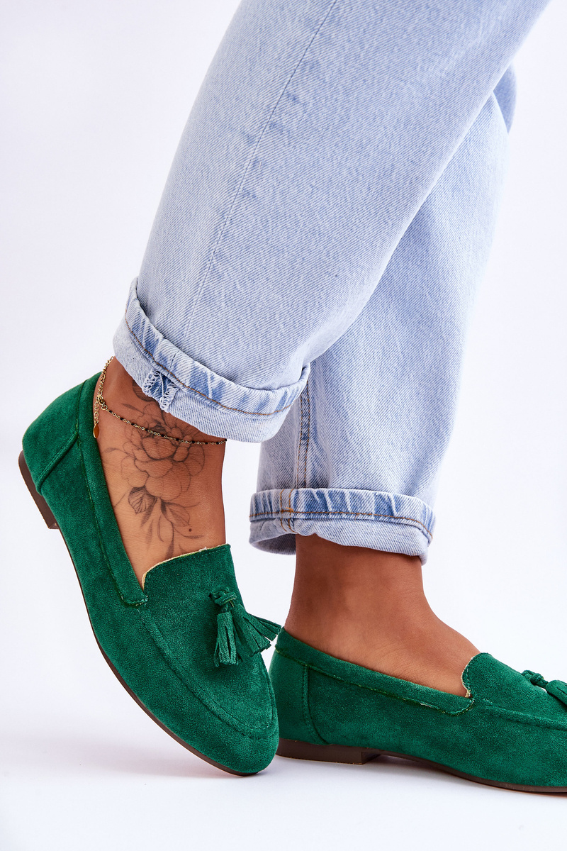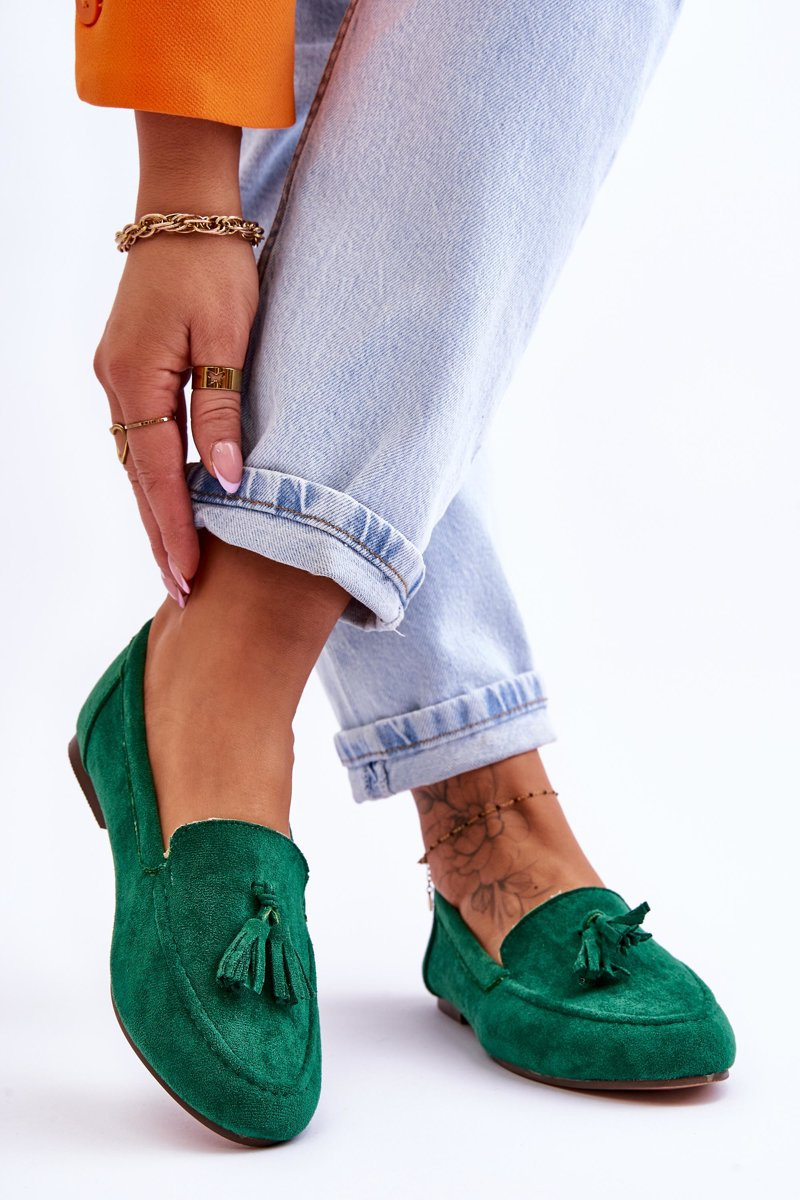 Semišové klasické mokasíny s okrajmi zelenú Averil