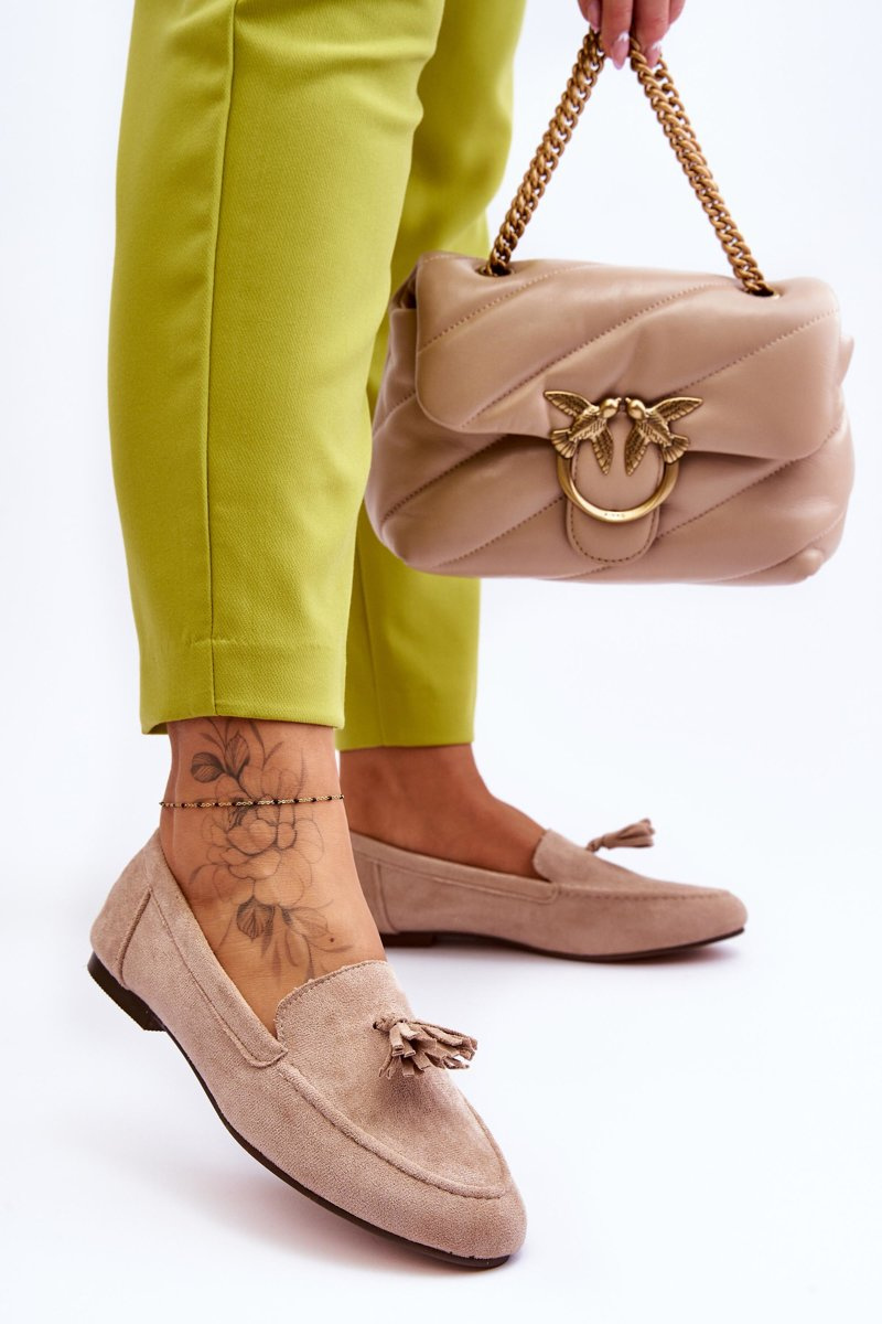 Neuveriteľne pohodlné mokasíry vyrobené z mäkkého ekologického semišu. Majú na prednej strane dekoratívne strapce. Ekologická kožená vložka sa postará o vaše pohodlie. Moccasíny sú vložené na plochú pätu, vďaka čomu sú mimoriadne stabilné. Perfektný model pre mnoho jarných a letných štylizovaní! Mali by ste ich mať! Pri výbere veľkosti navrhnite tabuľku veľkosti.