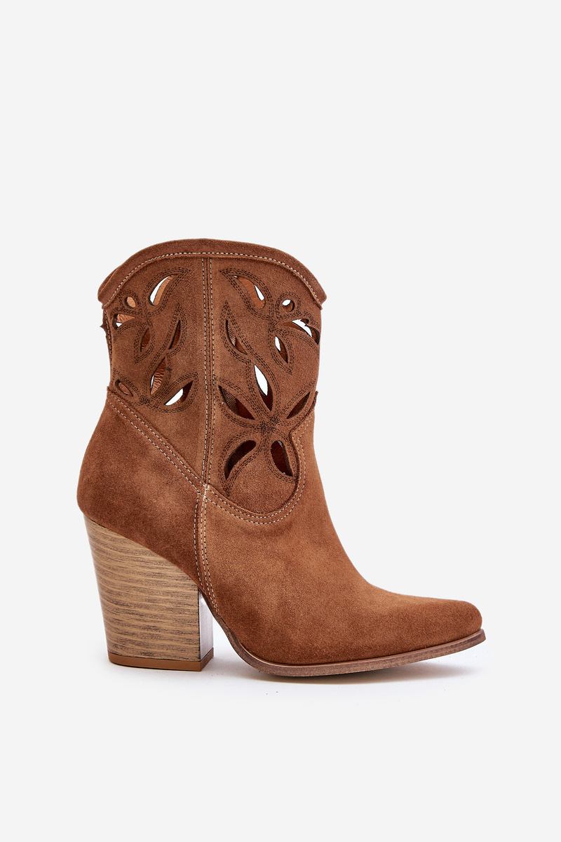 Semišové Kotníkové Topánky Cowboy S Perforovaným Vzorom Hnedé Lewski 3612