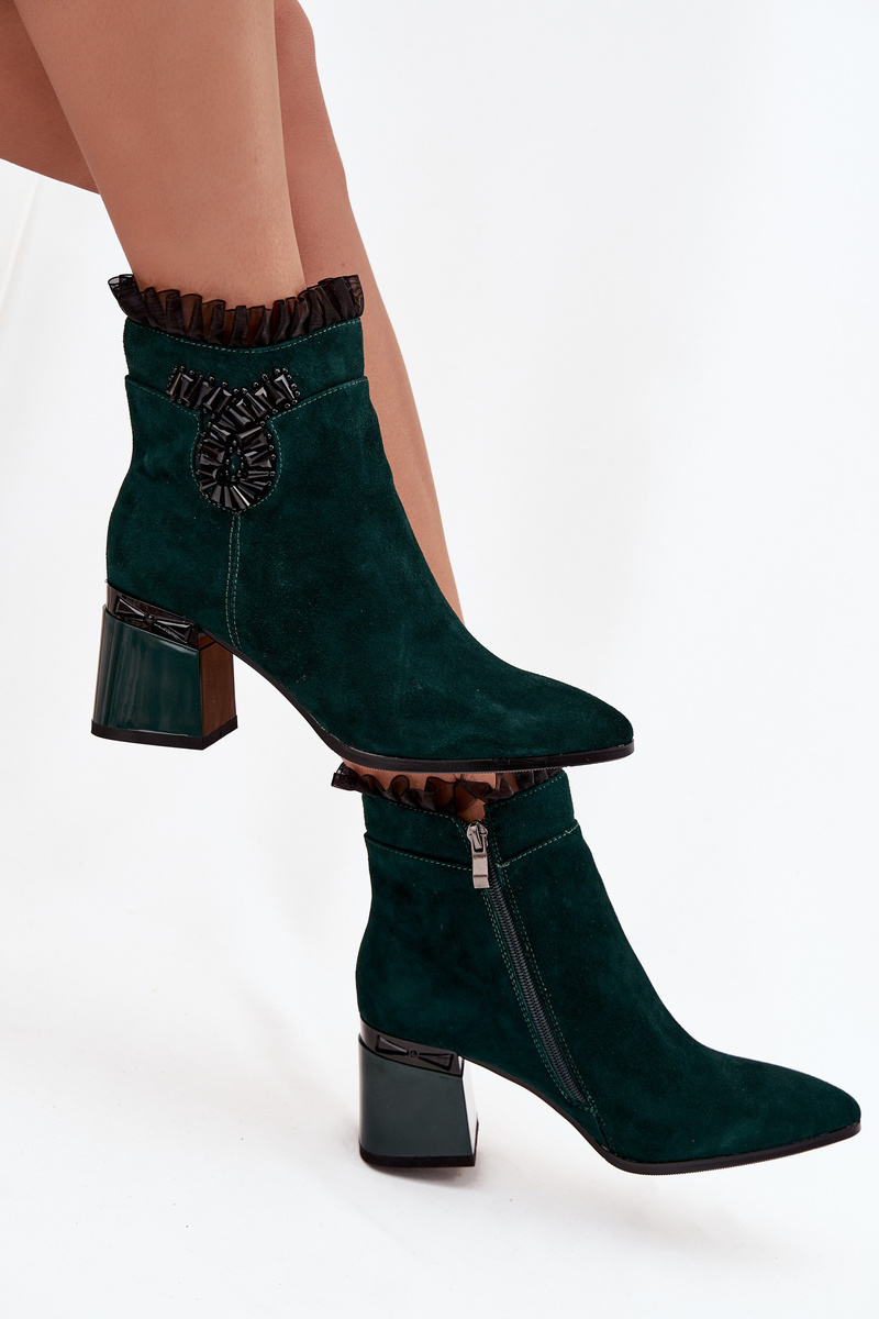 Semišové kožené dámske členkové čižmy s ozdobou s podšívkou D&A MR52-127 tmavozelená