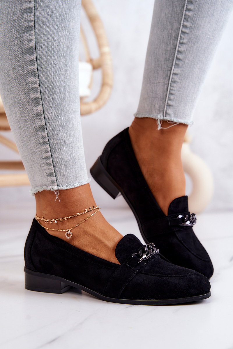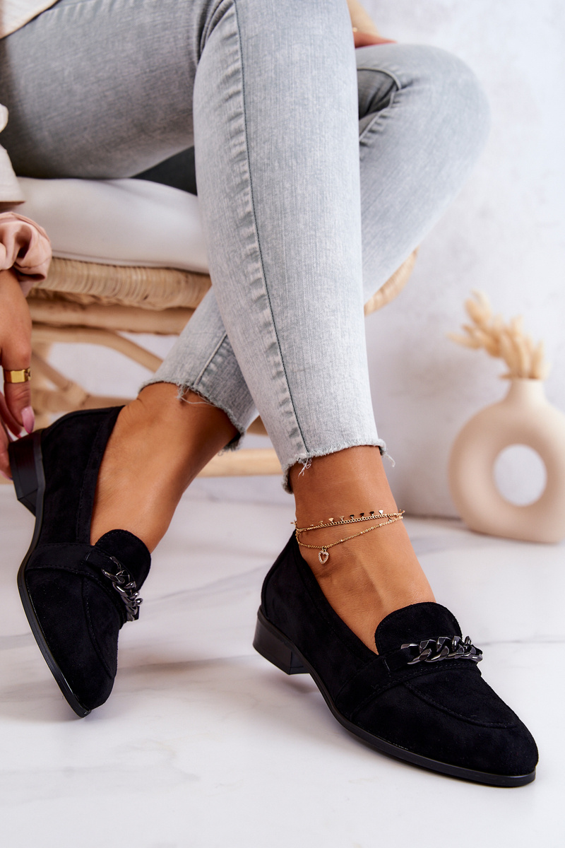 Elegantné topánky vyrobené zo semišovej ekologickej kože. Mäkká vložka vyrobená z prírodnej kože sa postará o vaše pohodlie. Perfektne sa zhodujú s rôznymi typmi osláv alebo stretnutí. Jemná päta spôsobujú, že vyzerajú veľmi klasicky, ale tiež elegantne. Na prednej strane je dekoratívna reťaz. Pozrite sa na našu všetku kolekciu Half -Cuts! Pri výbere veľkosti navrhnite tabuľku veľkosti.