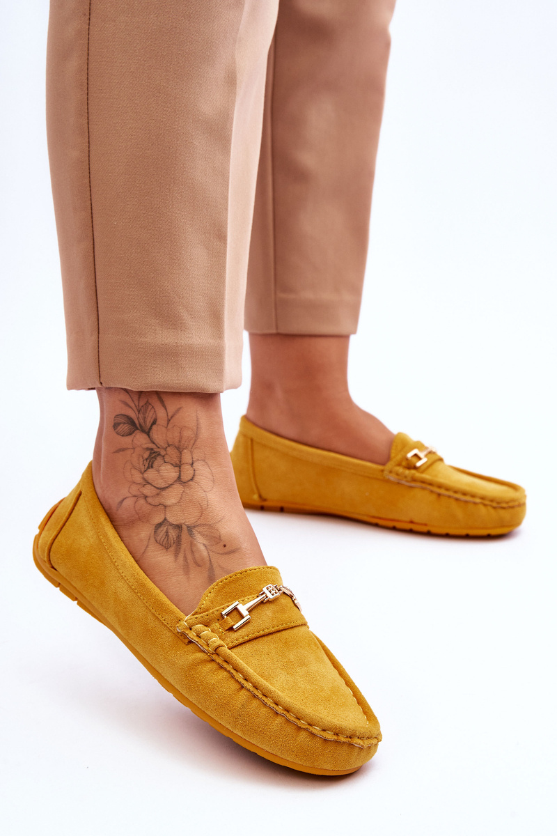 Klasické dámske mokasíny boli vyrobené z mäkkého ekologického semišu. Ploché vložené. Topánky sú neuveriteľne pohodlné, vďaka mäkkej vložke z ekologickej kože. Okrem toho majú na prednej strane dekoratívny prvok. Nadčasový model doplní mnohé z vašich štylizovaných! Mali by ste ich mať! Pozor! Moccasíny majú malé lepiace značky! Pri výbere veľkosti navrhnite tabuľku veľkosti.