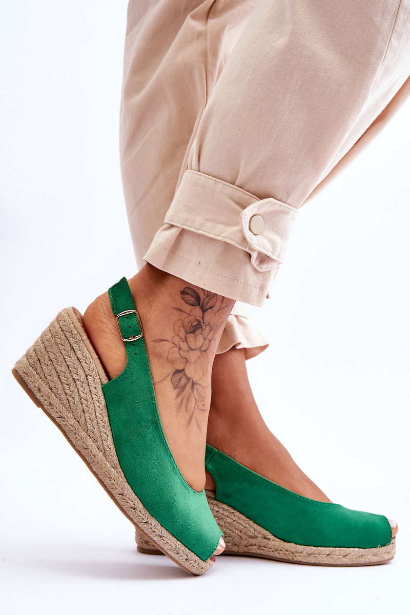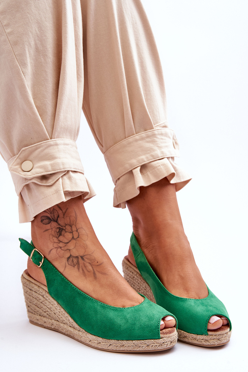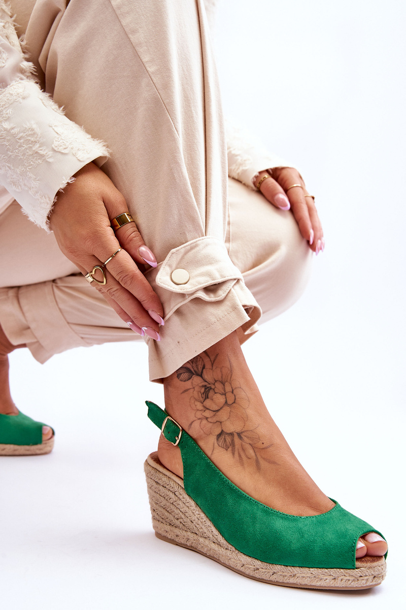 Dámske sandále boli vyrobené z ekologického semišu. Majú nastaviteľný opasok pripevnený prackou. Sandále sa umiestnili na klin zdobený jutovým copom. Podrážka je guma a nekripcia. Mäkká, ekologická semišová vložka sa postará o vaše pohodlie a pohodlie. Sandále sú skvelé v letných štylizáciách. Pri výbere veľkosti navrhnite tabuľku veľkosti.