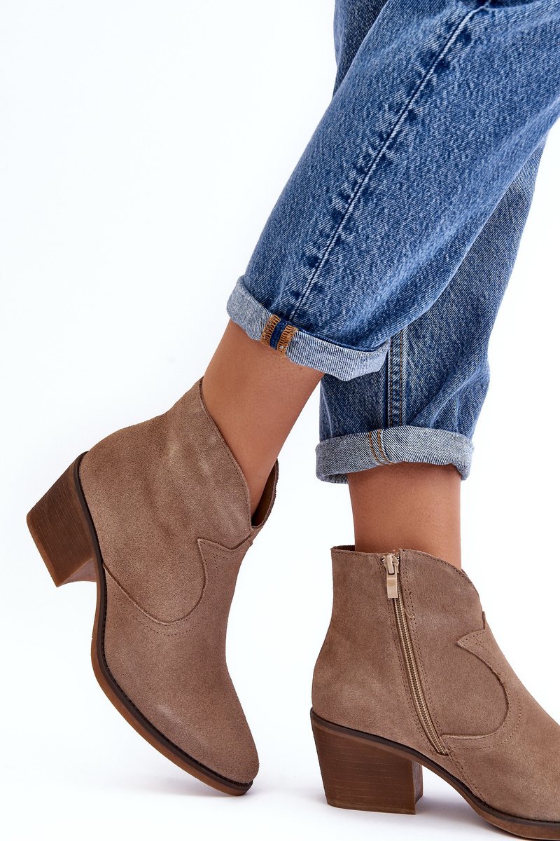 Módne, ženské topánky v štýle kovboju je hitom pre mnoho sezóny! Tento model bol vyrobený z prírodného semišu. Cowboy Cowboyes boli umiestnení vo forme príspevku. Tento model je pripevnený posúvačom na strane hornej časti. Nos v Spitz opticky zoštíhúva nohy. Neodkladajte ich a kúpte si ich ešte dnes! Pri výbere veľkosti navrhnite tabuľku veľkosti.