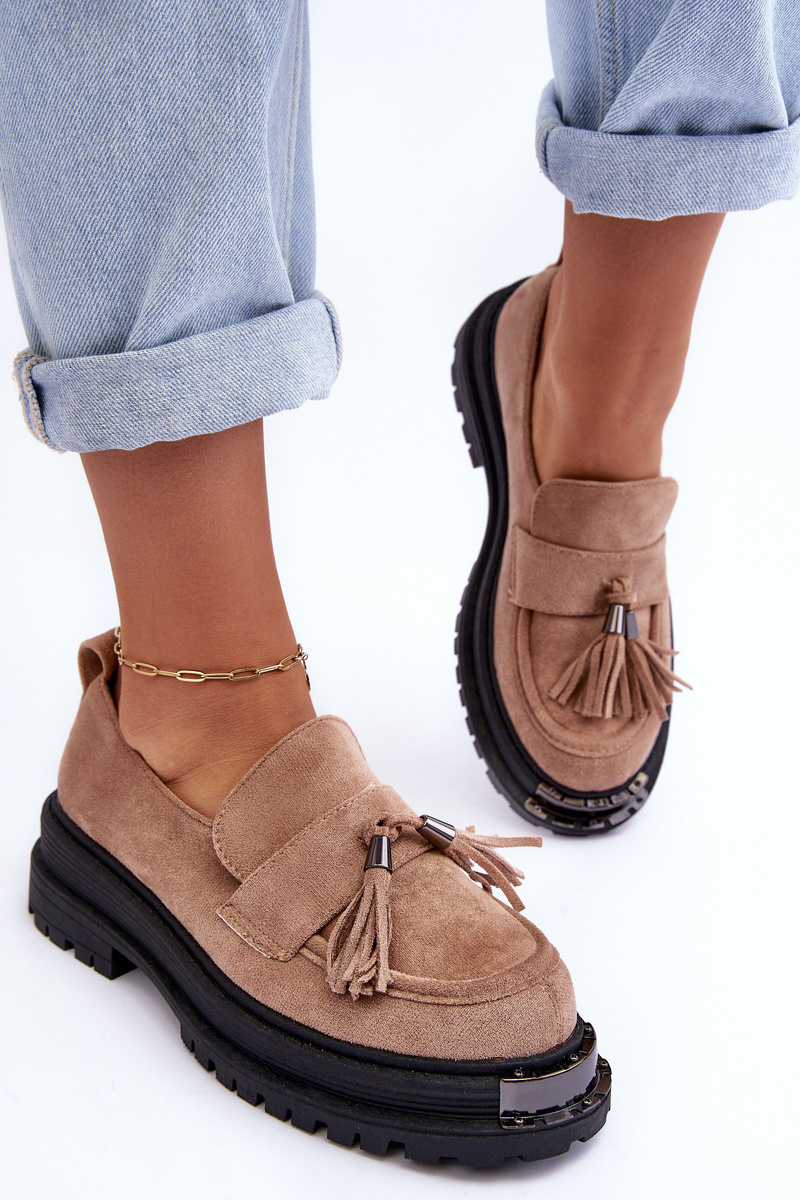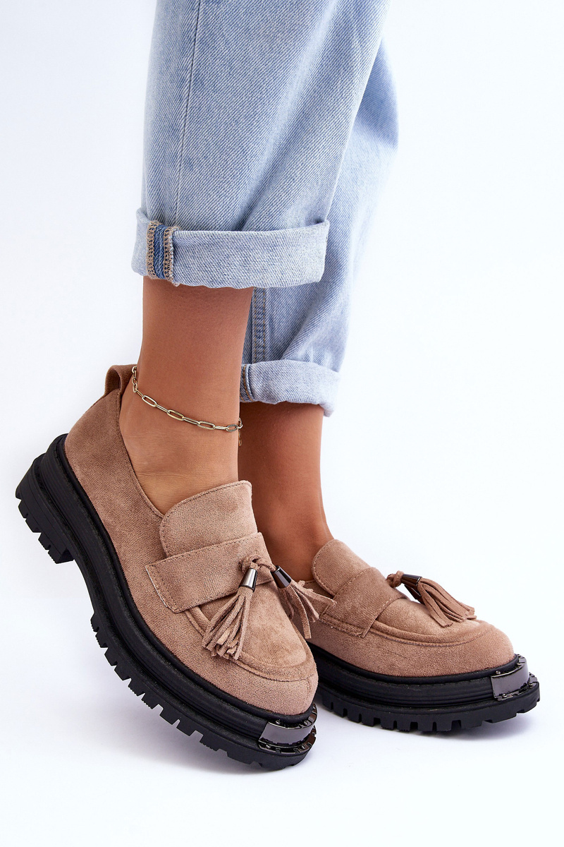 Dámske mokasíny sú perfektnou obuvou pre mnohé príležitosti! Vyrobené z ekologického semišu. Ploché a platforma. Zaoblené prsty na nohách. Predná časť je zdobená lemovaným pásom. Mäkká ekorálna kožená vložka poskytne pohodlie počas používania. Okrem toho je päta stuhnutá. Určite sa vám bude páčiť tento model! Pri výbere veľkosti navrhnite tabuľku veľkosti.