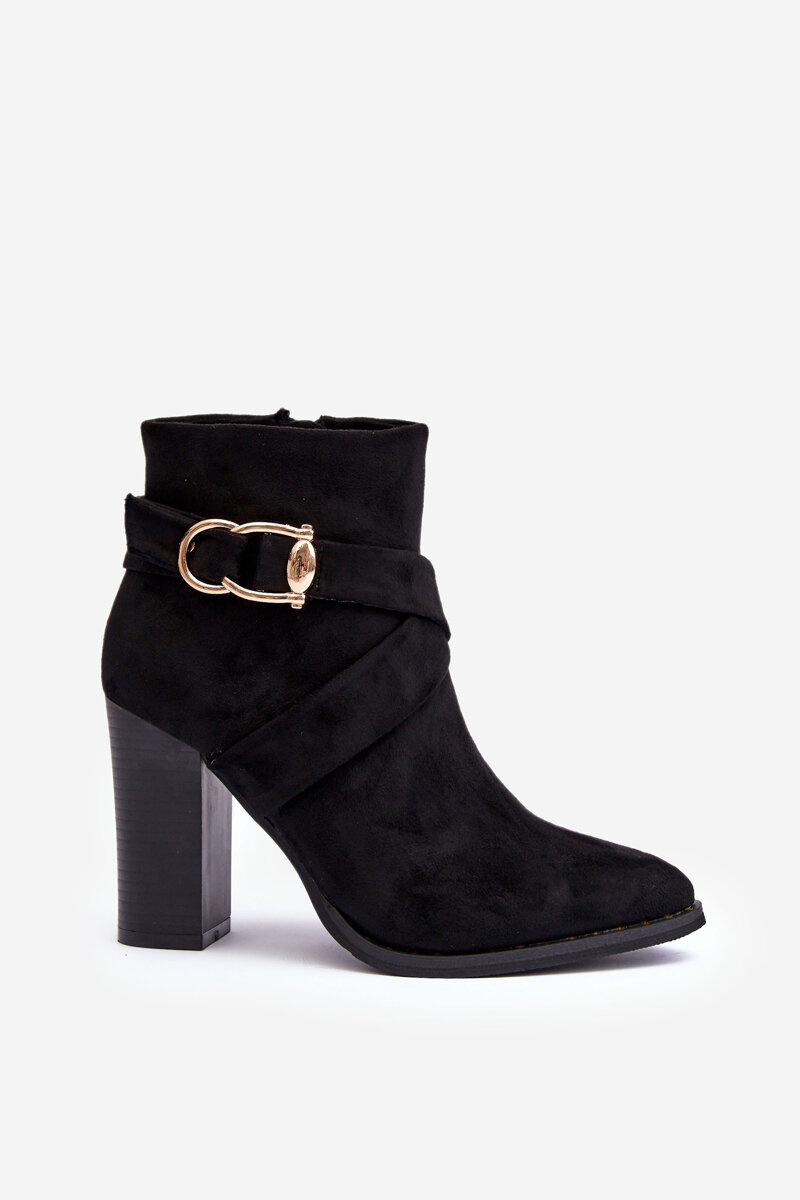Elegantné členkové topánky vyrobené z ekologického semišu. Vysoko zakorenený vo forme príspevku. Horná časť zdobená pásovými pruhmi. Model pripevnený posúvačom. Studivená päta, interiér izolovaný obuvou prikrývkou. Ideálny model pre elegantné a party štylizácie. Pri výbere veľkosti navrhnite tabuľku veľkosti. /p>