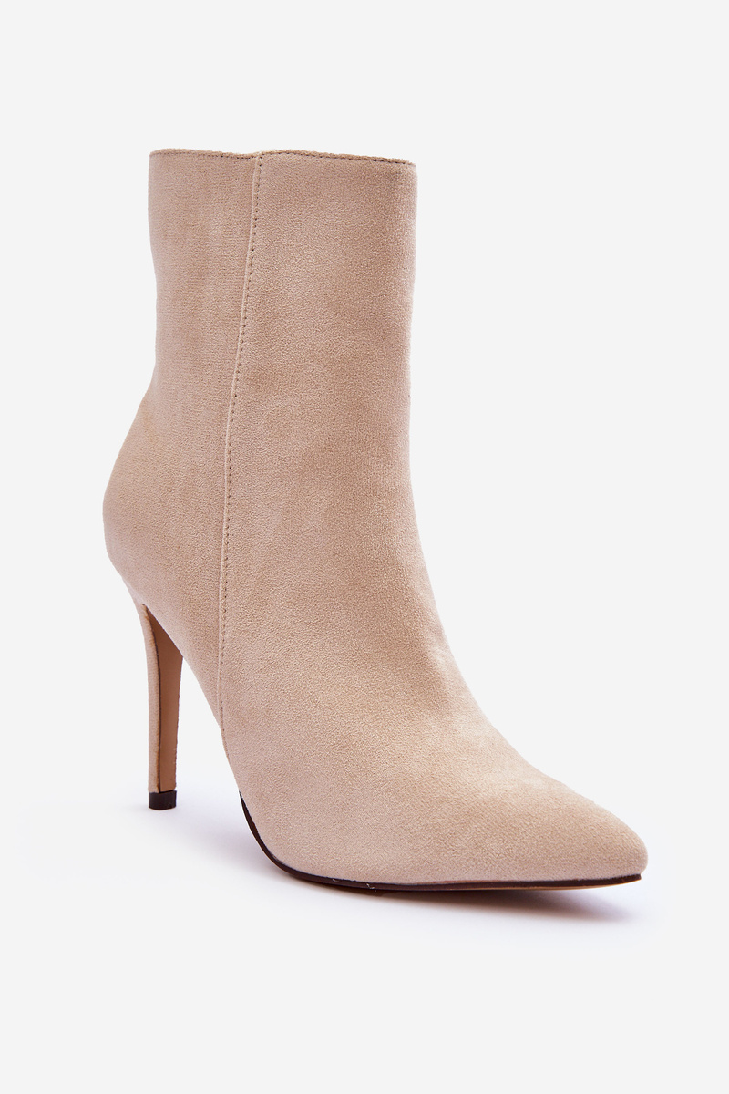 Elegantné ženské topánky vyrobené z ekologického semišu. Zastavené do vysokých podpätkov vo forme špendlíka. Pripevnený zipsom na vnútornej strane hornej časti. Tento model má stuhnutú pätu. Nosy v Spitz opticky vymenia nohy. Topánky sú skvelé v mnohých štýloch, napr. Pre šaty, sukne alebo nohavice. Mali by byť vo vašom šatníku! Pri výbere veľkosti navrhnite tabuľku veľkosti. p>