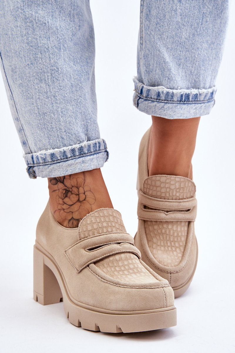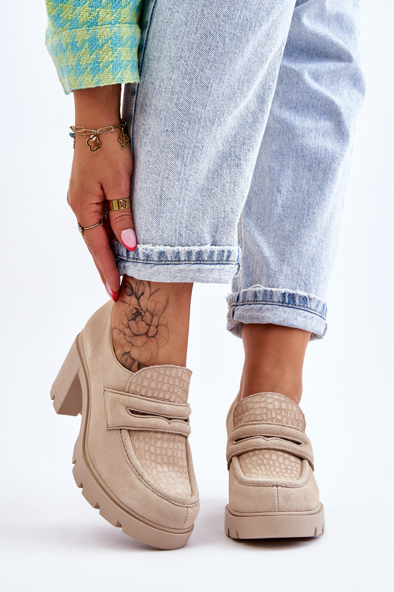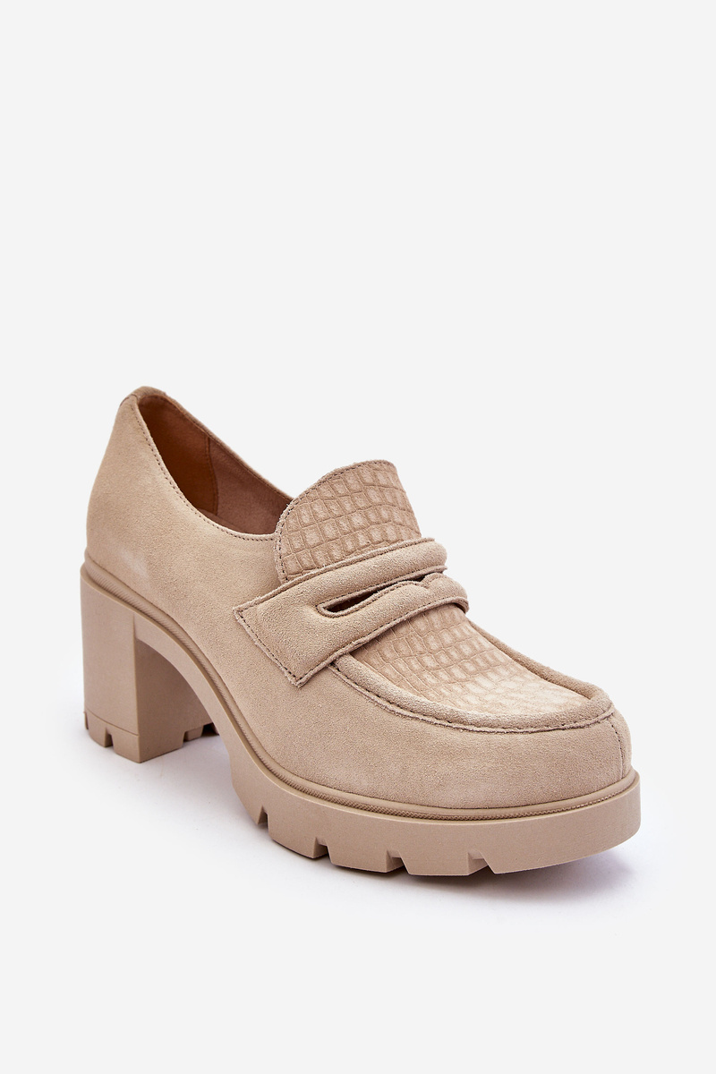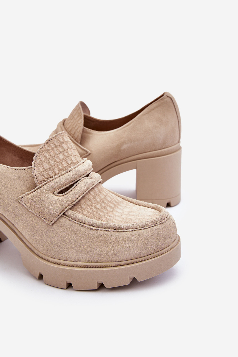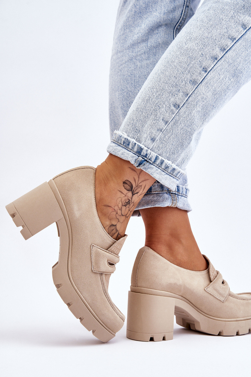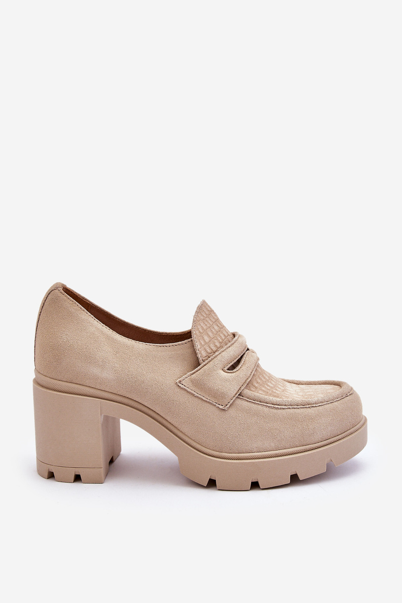 Semišové topánky na stĺpiku a platforme ľahké béžové lemar Arabell