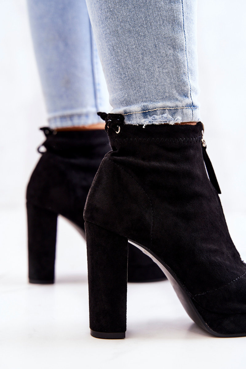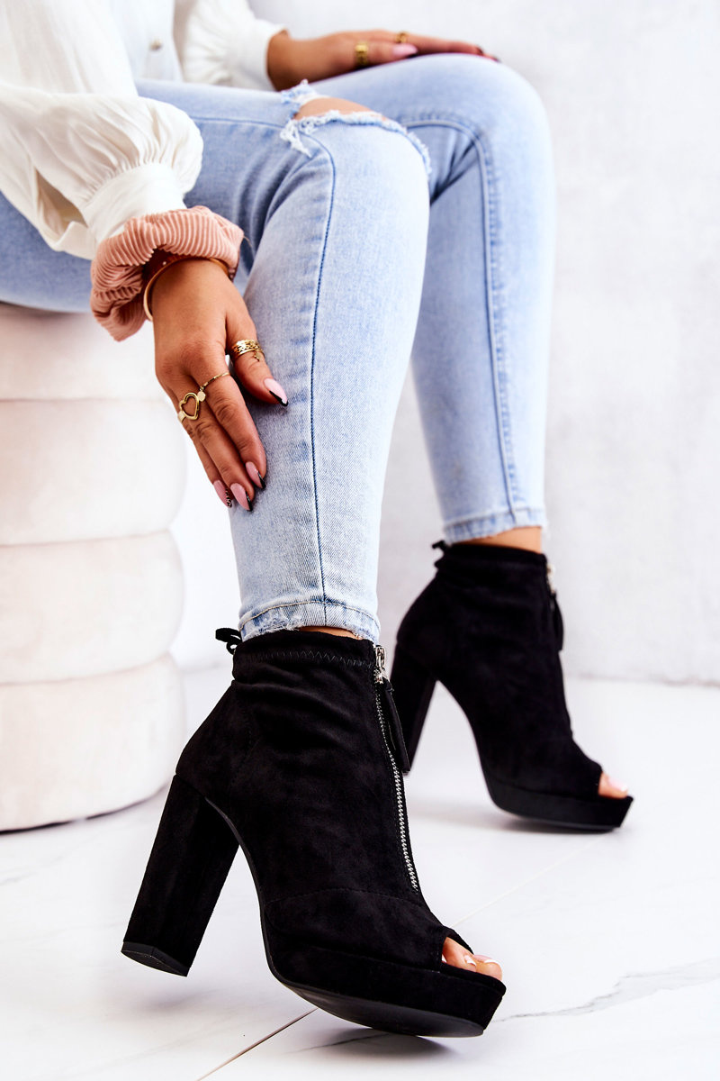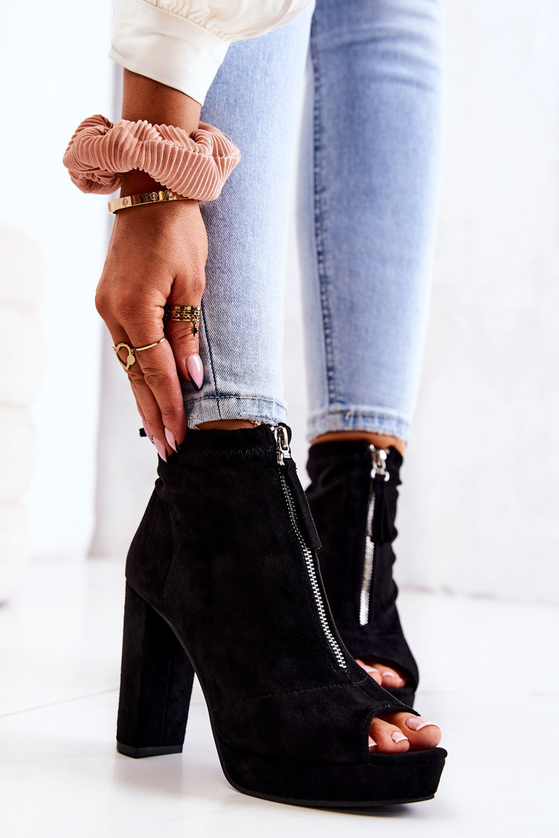 Čižmy boli vyrobené zo semišovej ekologickej kože. Majú vpredu posúvač, ktorý vám pomôže obliecť sa. Majú pevnú pätu. Šírka v hornej časti hornej časti je nastaviteľná vďaka reťazcom s dekoratívnymi korálkami. Predná časť obuvi bez nosa. Vďaka stabilnej päte a nízkej platforme sú tieto topánky mimoriadne pohodlné na nosenie. Pri výbere veľkosti postupujte podľa tabuľky veľkosti