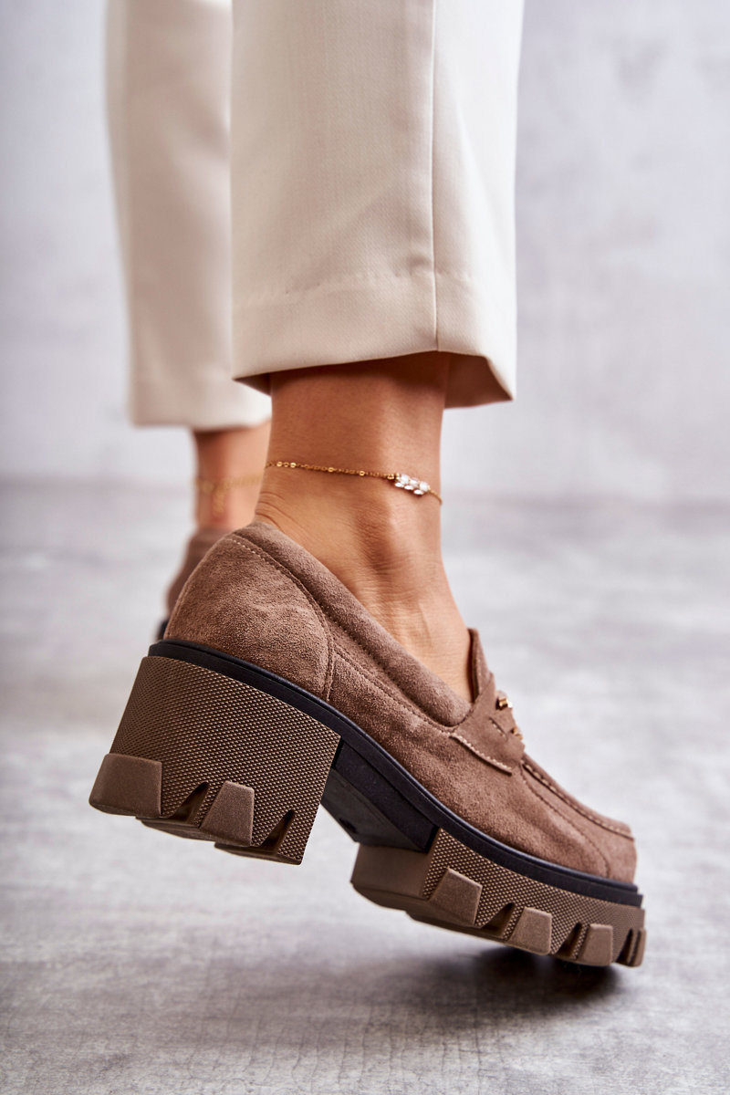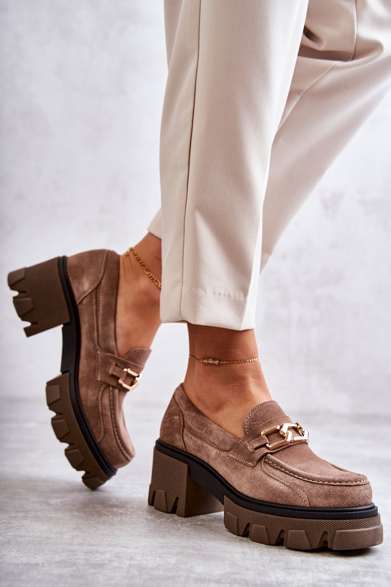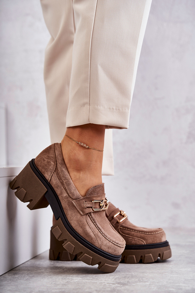 Towar wprowadzony przed 13.12.2024Tak Semišové vysoké podpätky so zlatou dekoráciou hnedý lemar lurdes