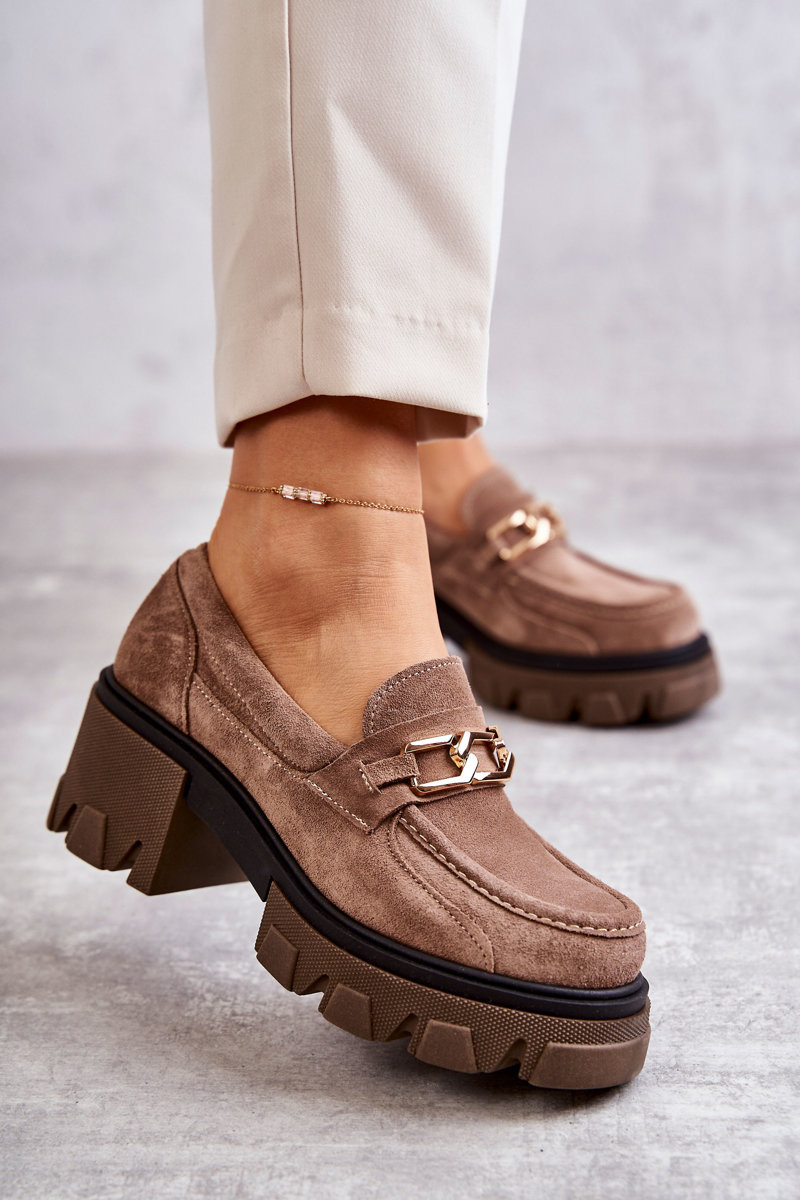 Unikátne dámske topánky vás poteší svojím vzhľadom a pohodlím počas používania. Vyrobené z prírodného semišu. Majú vpredu reťazovú dekoráciu. Okrem toho je päta stuhnutá. Topánky boli položené na masívnej plošine a plochej päte vyrobenej z gumového plastu. Okrem toho nie sú nekvalitné. Mimoriadne pohodlný model s prírodnou koženou vložkou. Pri výbere veľkosti navrhnite tabuľku veľkosti. p>