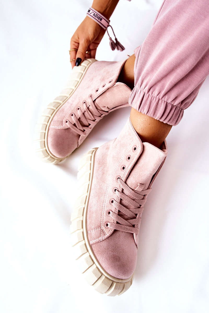 Semišové vysoké tenisky na ružovej Menifise platforme