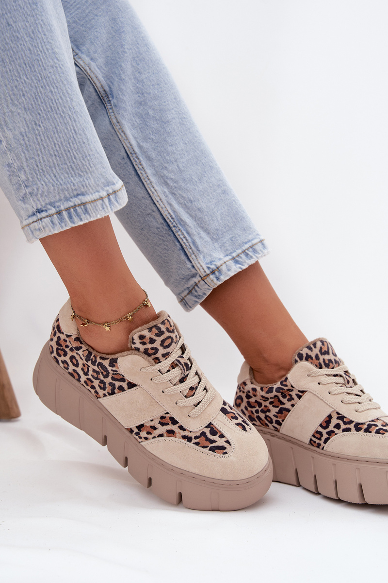 Semišové zateplené dámske tenisky na masívnej platforme Vinceza 66841 Leopard béžové