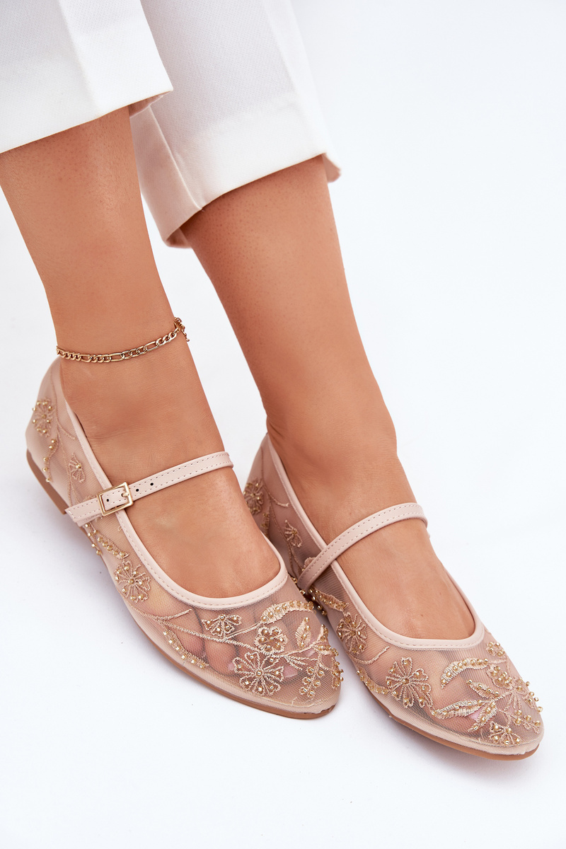 Sieťované Baleríny S Vyšívaním A Ozdobou Béžové Tillilora