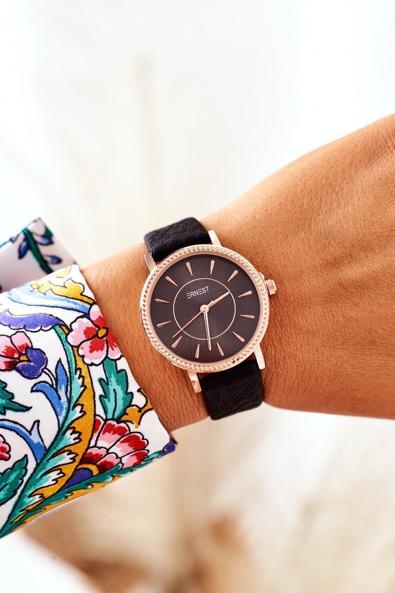 Krásne hodinky Ernest. Disk hodiniek je vyrobený z nehrdzavejúcej ocele a pás vyrobený z ekologickej kože. Hodinky neobsahujú nikel.