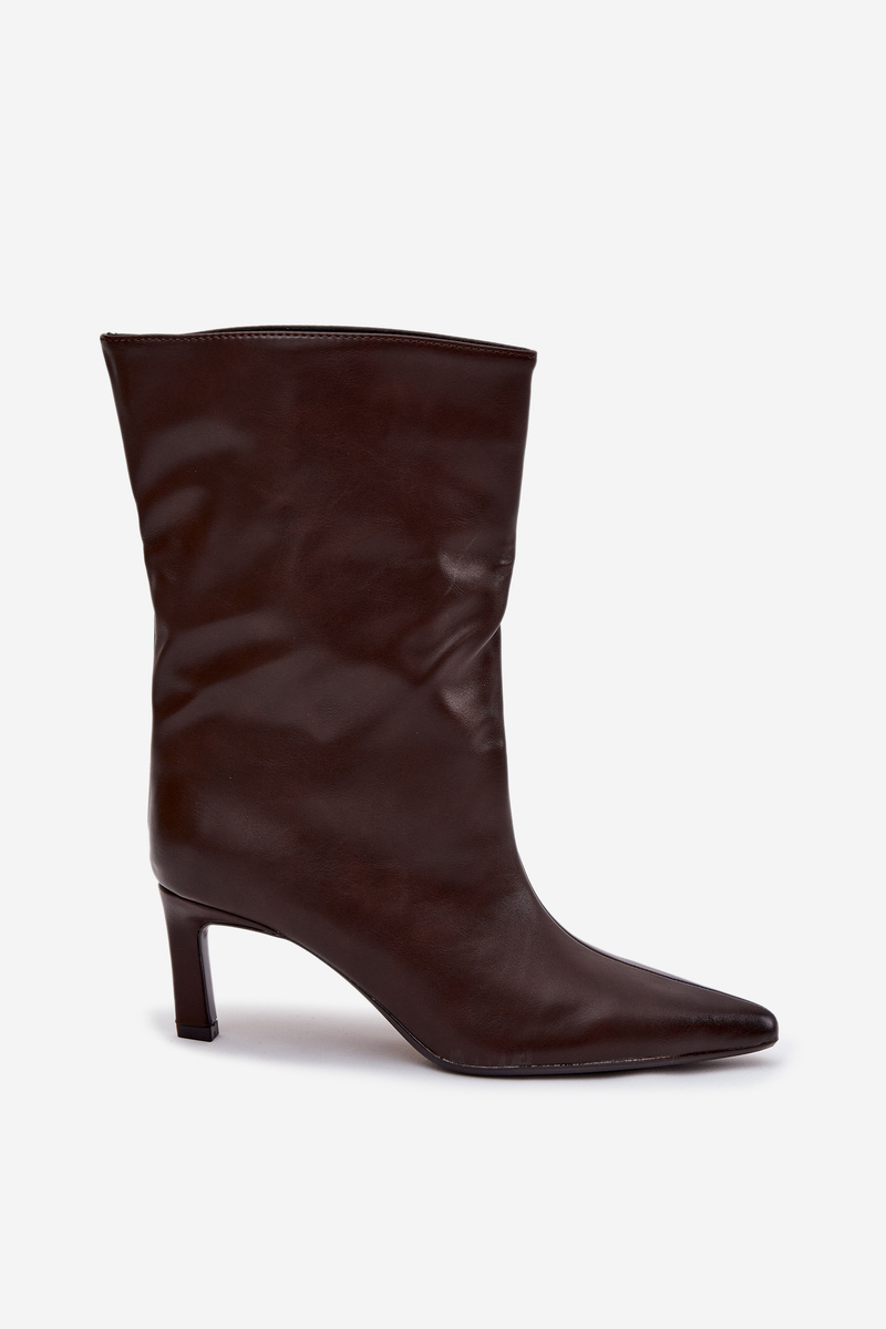 Šmyk Damske Čižmy Na Päti Z Eko Kože Čokoládové Norell