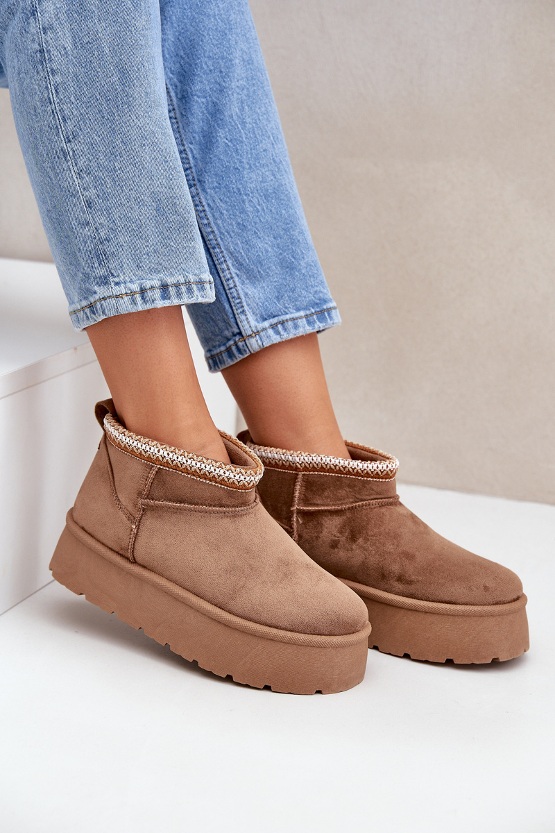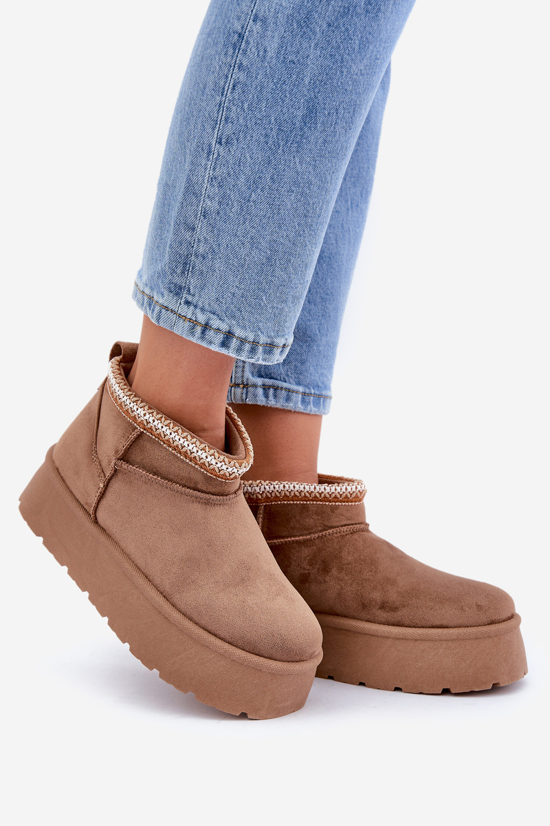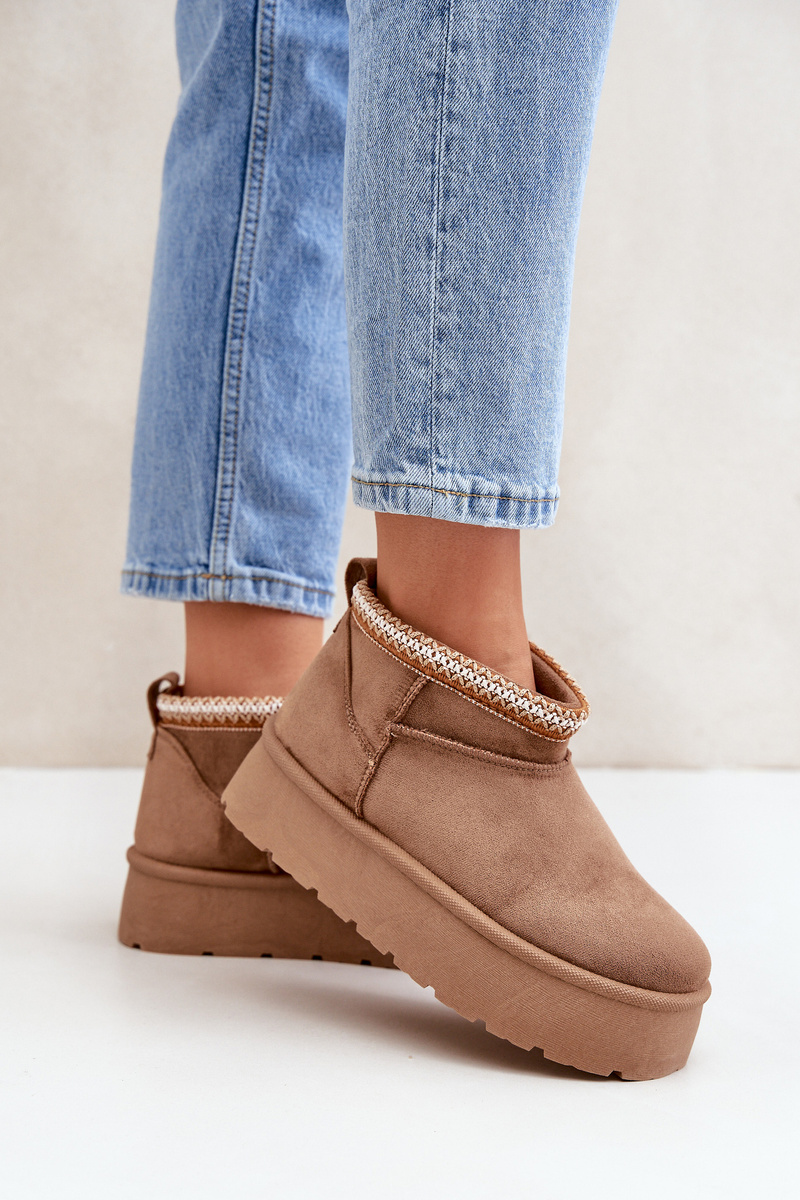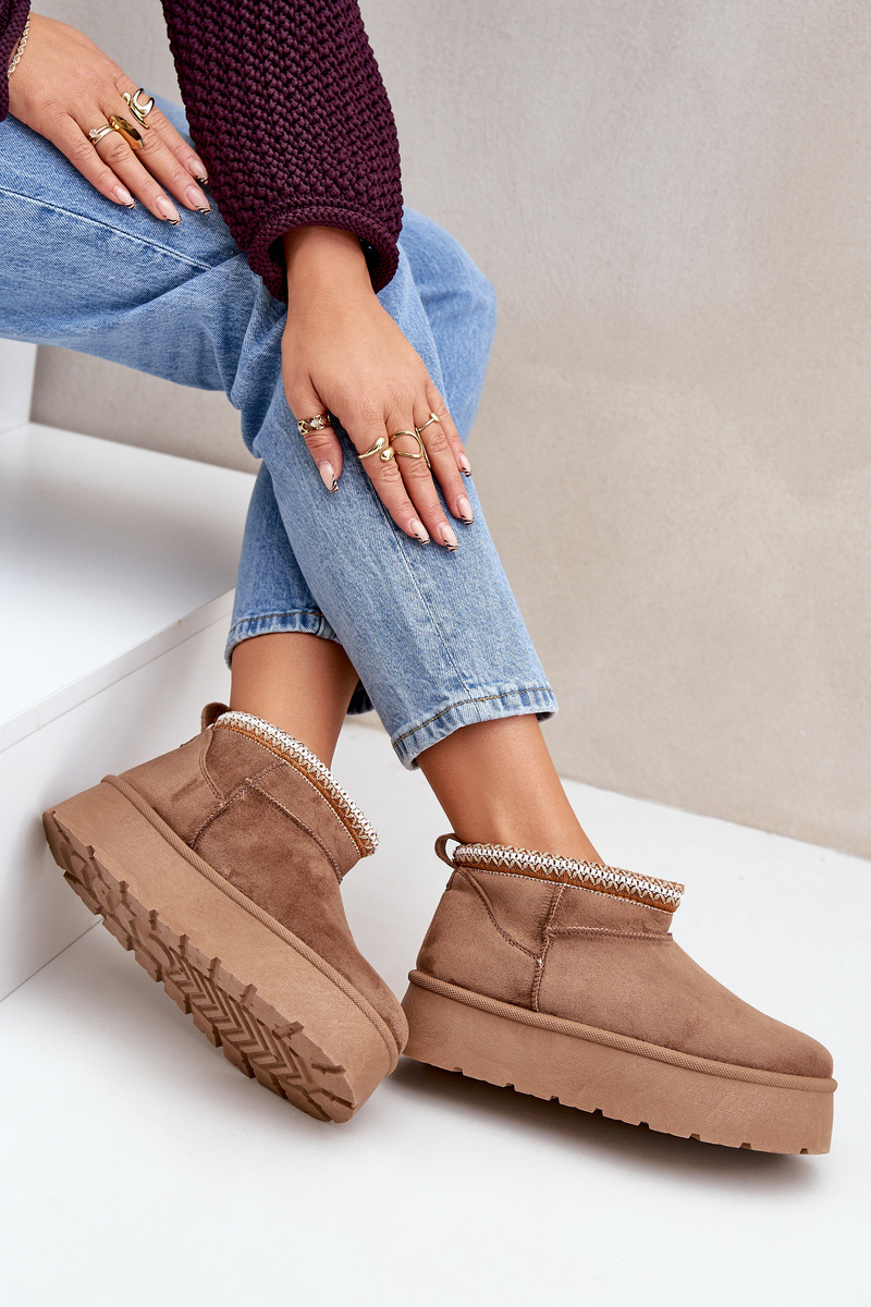 Snehové čižmy na platforme s ozdobným vyšívaním svetlo béžové Heslania
