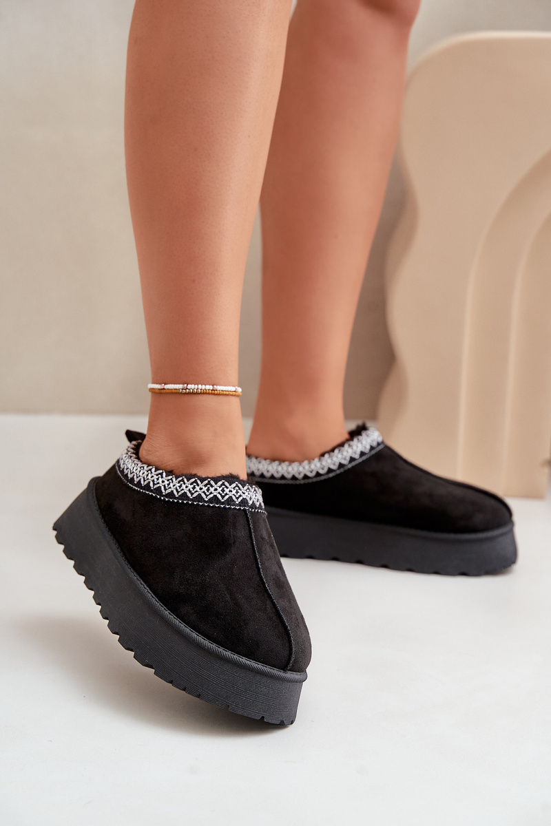 Snehové Papuče Na Platforme S Vyšívaním Čierne Tamilda