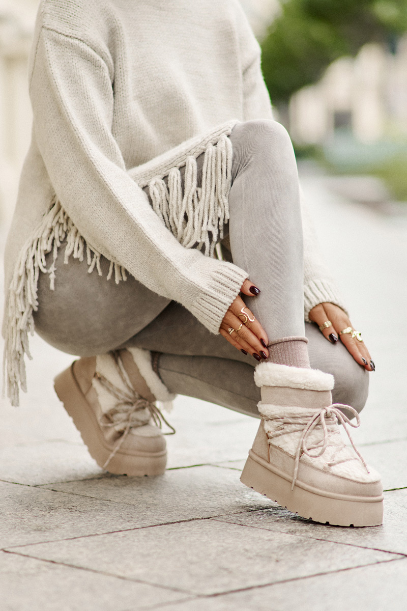 Snehové Topánky Na Platforme S Šnurovaním Svetlo Béžové Izathiel
