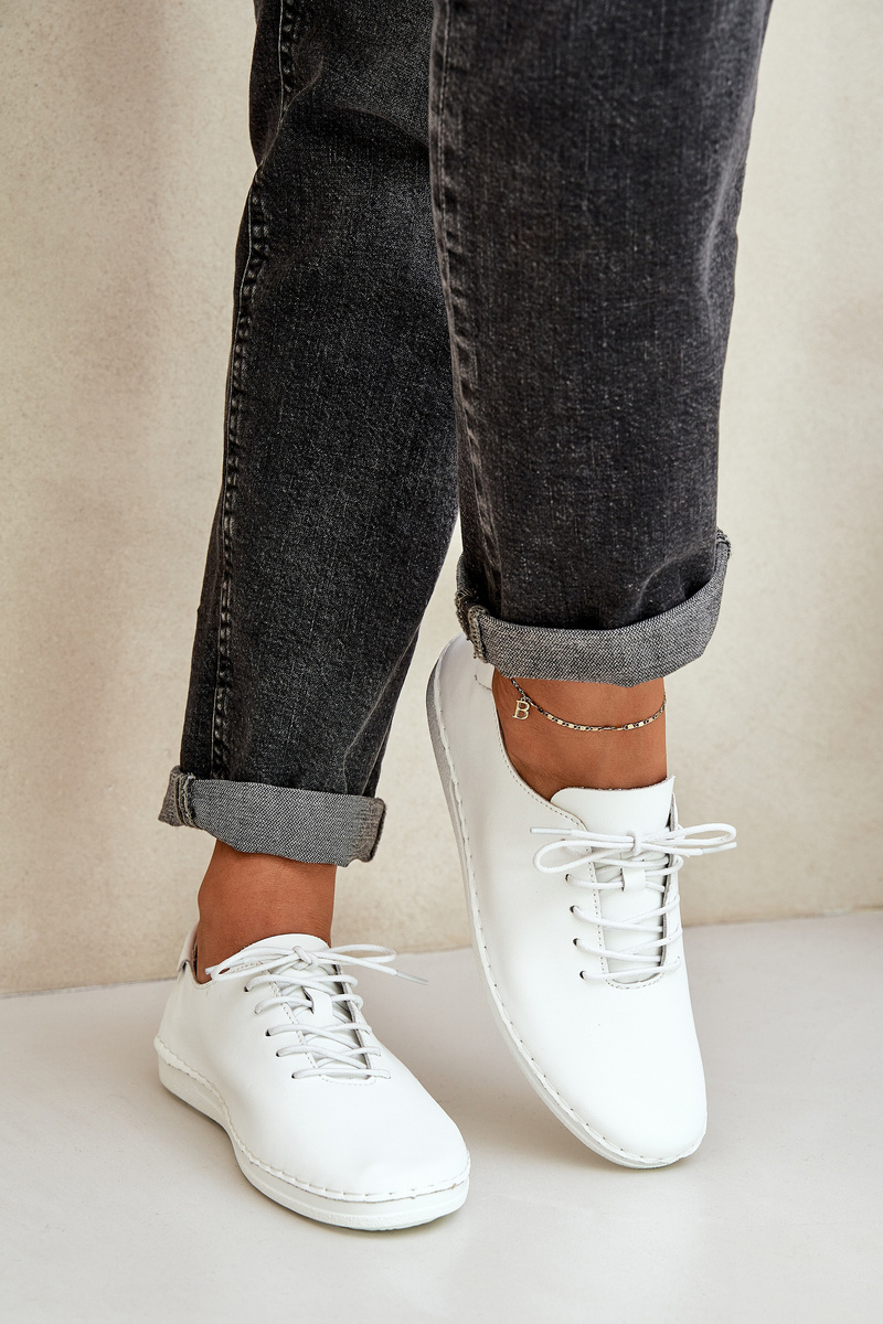 Šnurovacie Poltopánky Z Prírodnej Kože D&A LR51-645 Biele