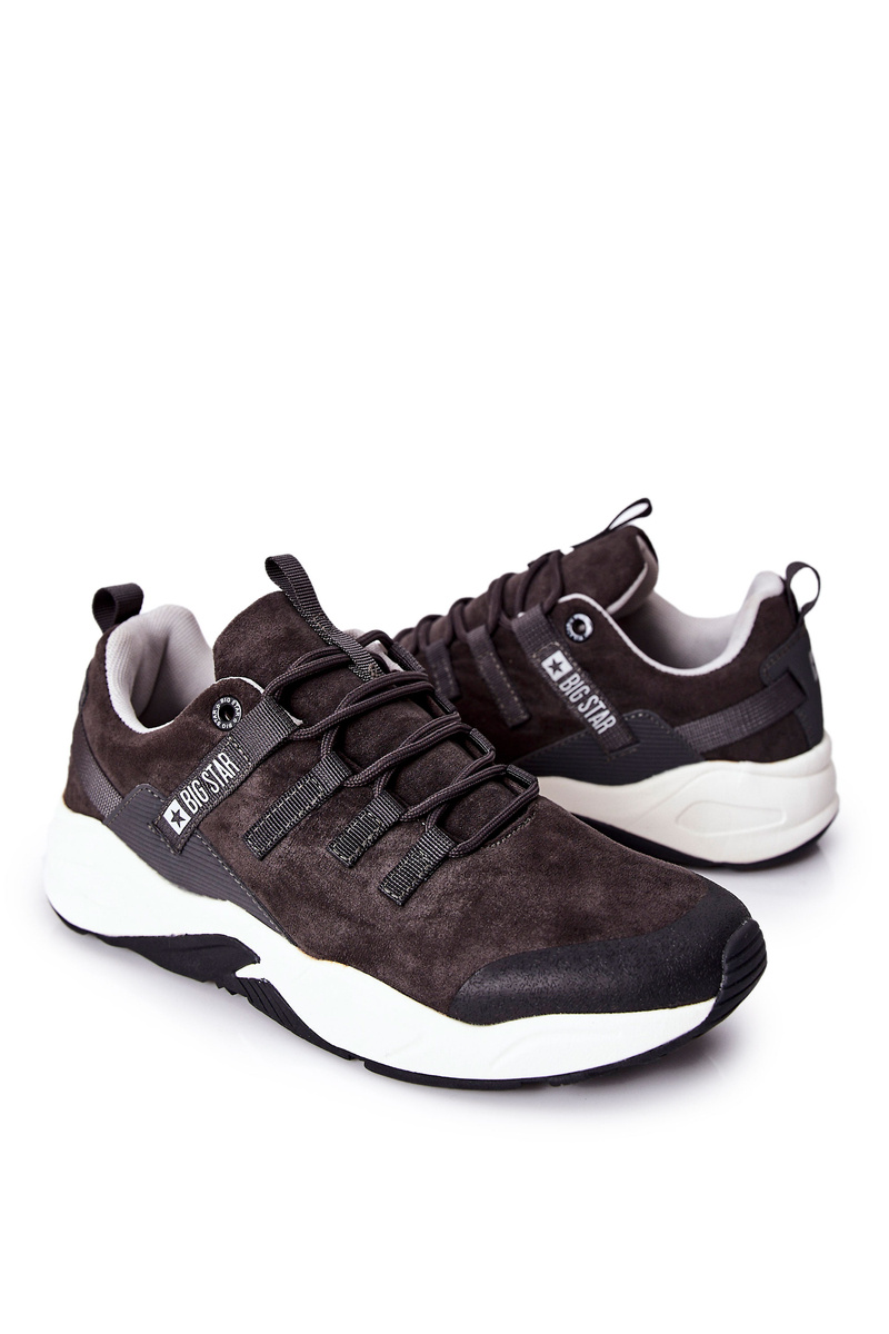 Pánske športové topánky s veľkou hviezdou. Vyrobené z kombinácie ekologickej pokožky napodobňujúcej semiš a tkaniny. Nos topánky a päty bol dodatočne posilnený ekologickou kožou. Topánky majú jedinečný vložku na pamäťový penový systém. Vložka si pamätá tvar chodidla, poskytuje perfektné prispôsobenie, absorbuje otrasy, je odolná voči deformácii a umožňuje vám odpariť reguláciu vlhkosti a teploty. Solid Big Star Shoes - Skontrolujte ich! Pri výbere veľkosti navrhnite tabuľku veľkosti.