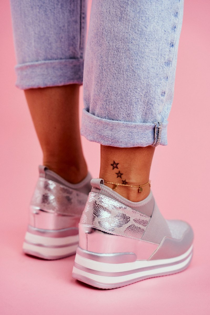 Stop! Hľadáte pohodlné a módne topánky? Ak áno, tento model splní vaše očakávania. Horná a vložka vyrobená z ekologickej kože, ktorá v kombinácii s motívom pre hadí pokožku poskytuje úžasný efekt. Jemný klin zdvihne vašu postavu a poskytne maximálne pohodlie. Stretch Gum a flexibilný zvršok zaručia perfektné prispôsobenie obuvi. Získajte trochu luxusu a vychutnajte si nový pár topánok. Pri výbere veľkosti postupujte podľa tabuľky veľkosti.