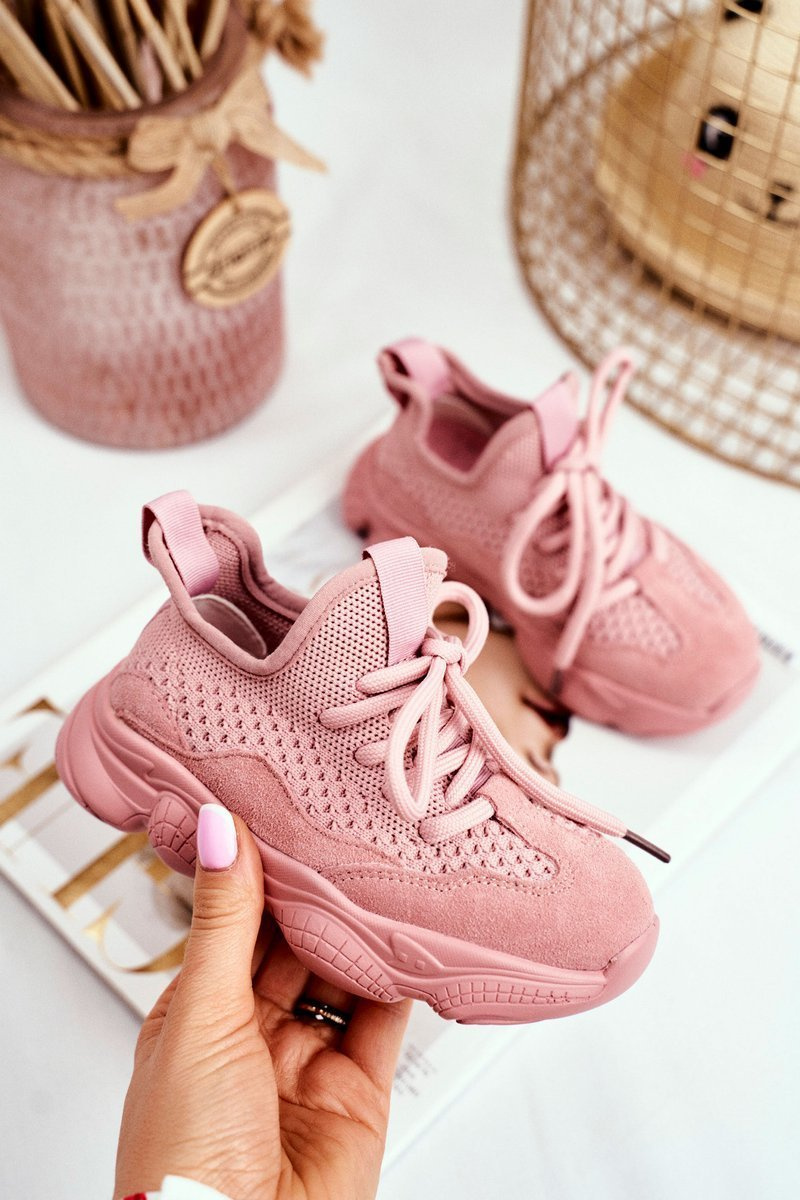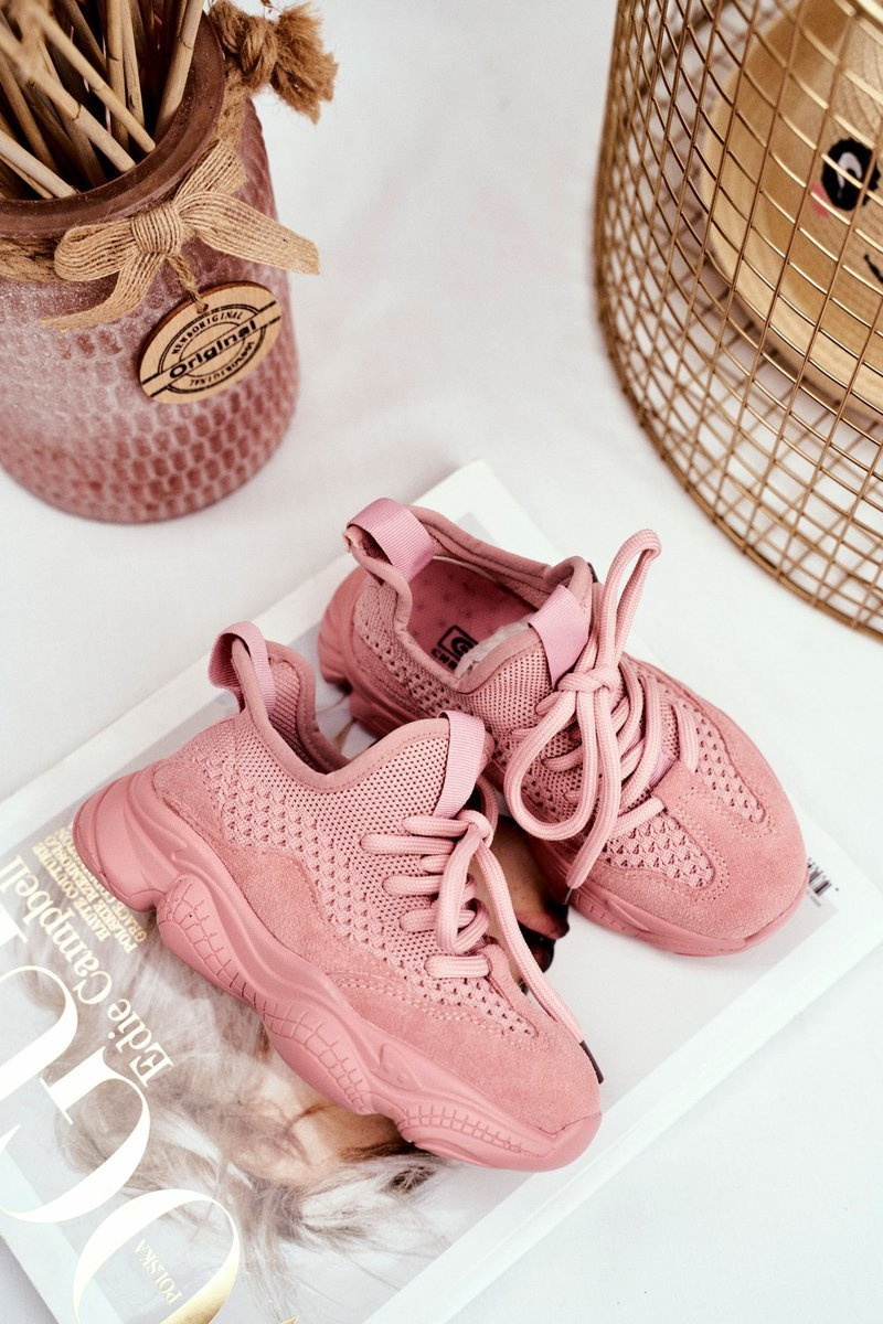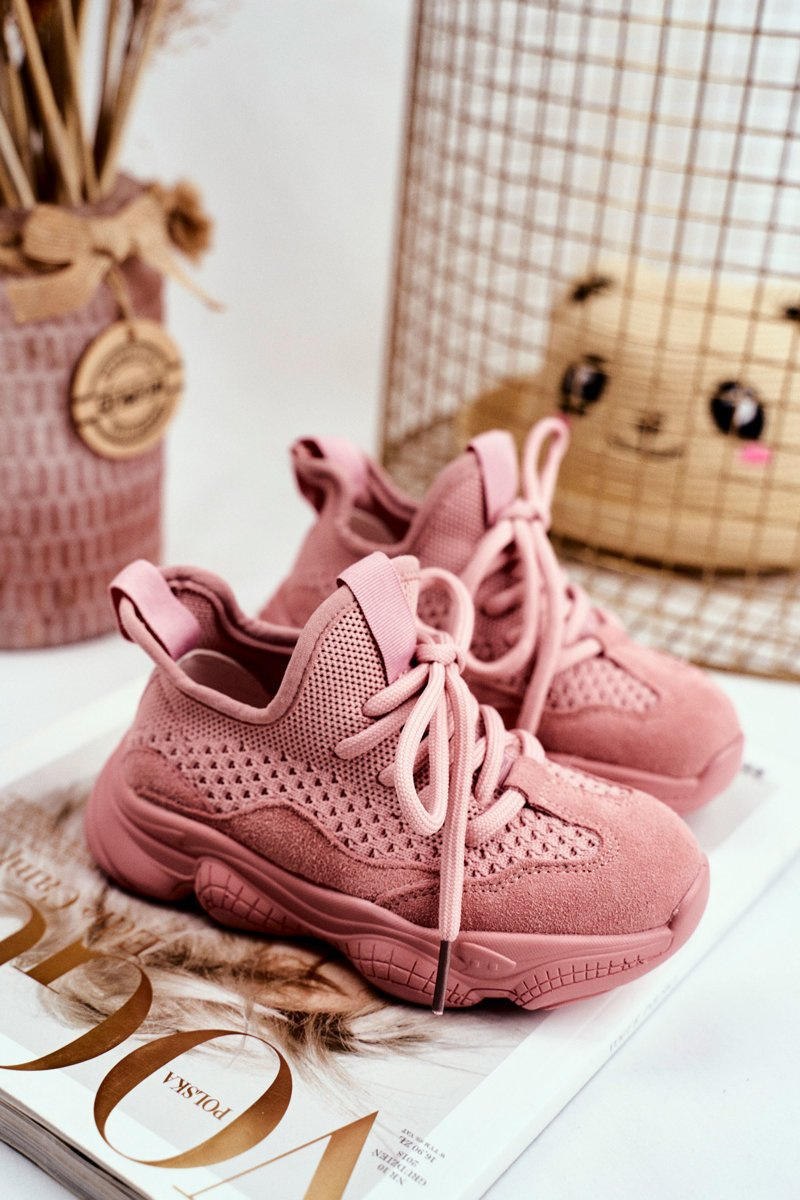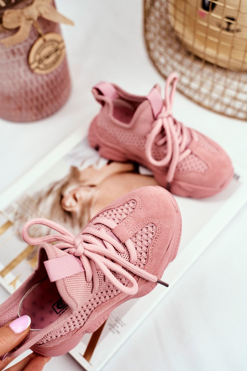 Športové športové topánky čipky -up ružové volme semiš