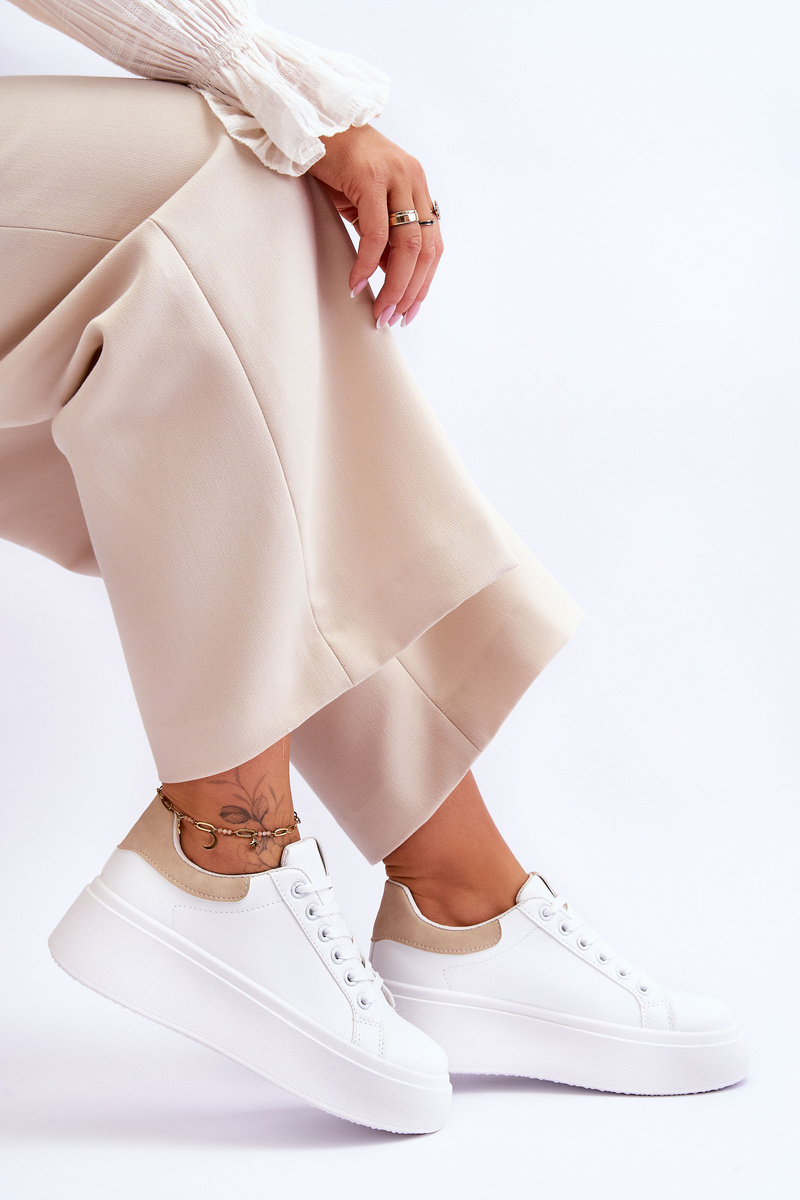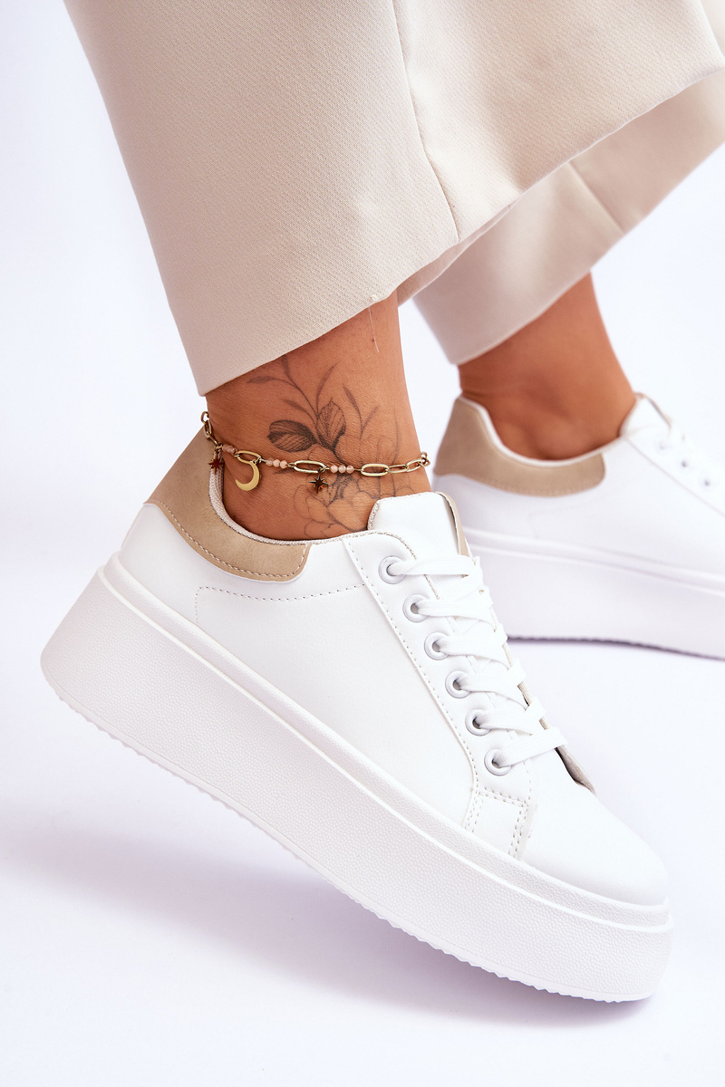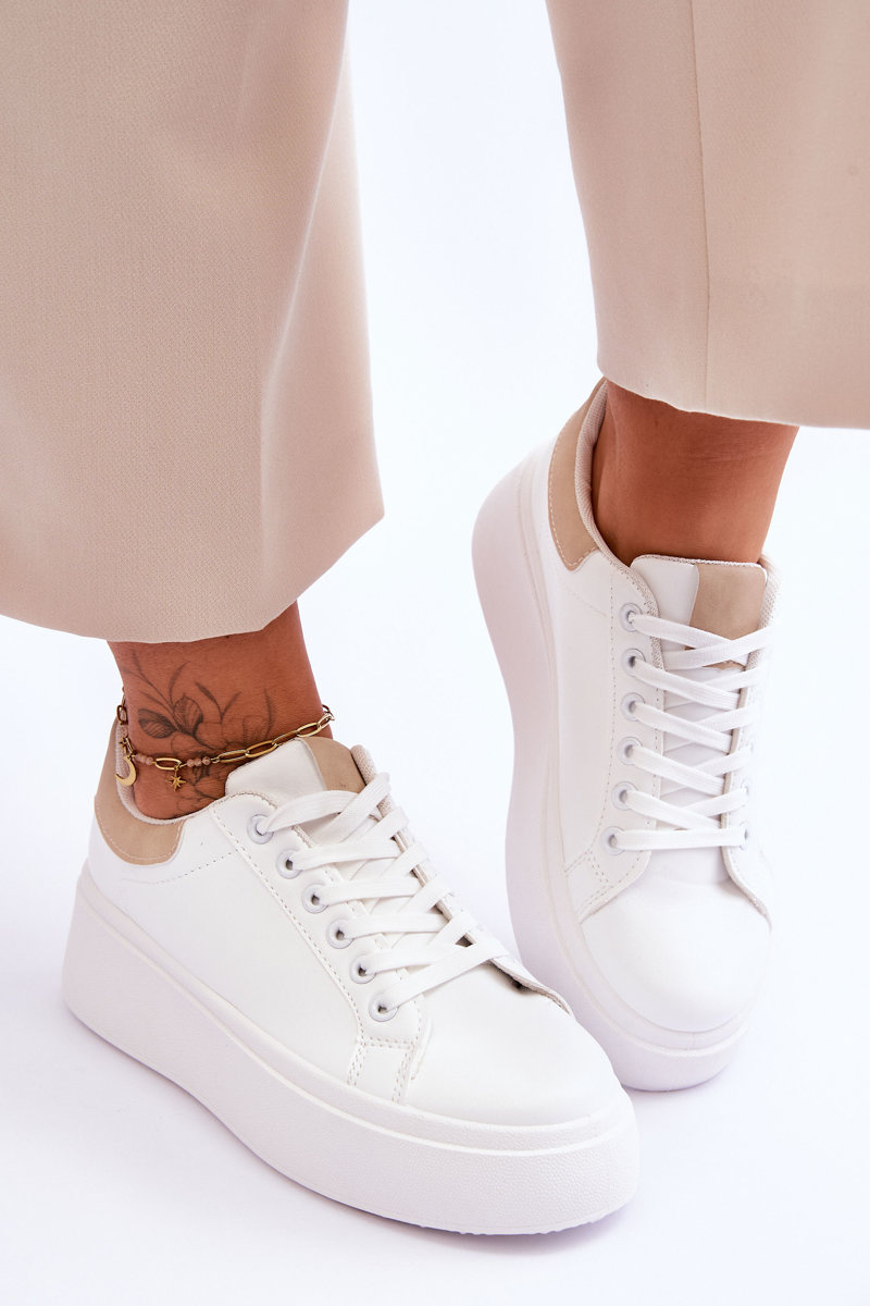 Športové topánky na masívnej bielej a béžovej platforme Boneti