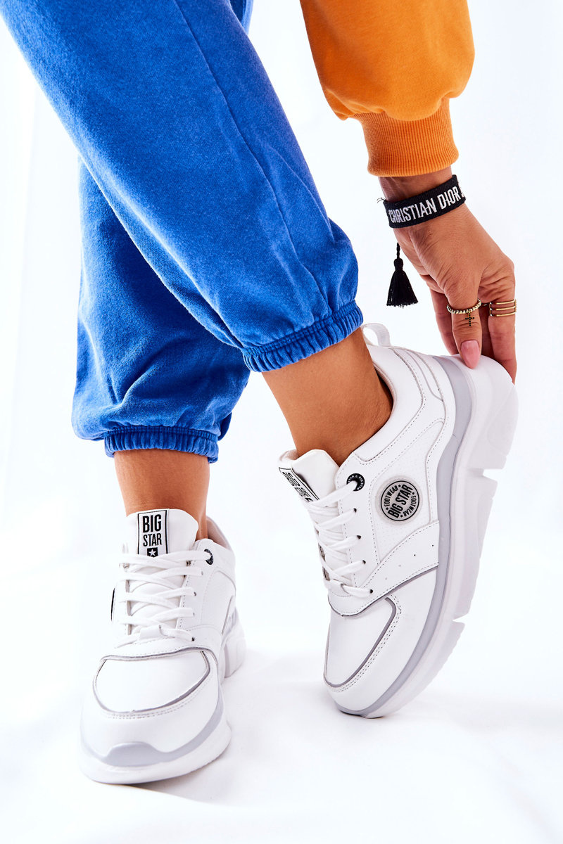 Klasické dámske športové topánky od renomovanej značky Big Star. Topánky boli vyrobené z ekologickej kože a textilného materiálu. Majú na vonkajšej strane dekoratívny znak. Vďaka masívnej podrážke je topánky veľmi stabilné. Klasika predovšetkým, obliekajte veľkú hviezdu! Pri výbere veľkosti navrhnite tabuľku veľkosti.
