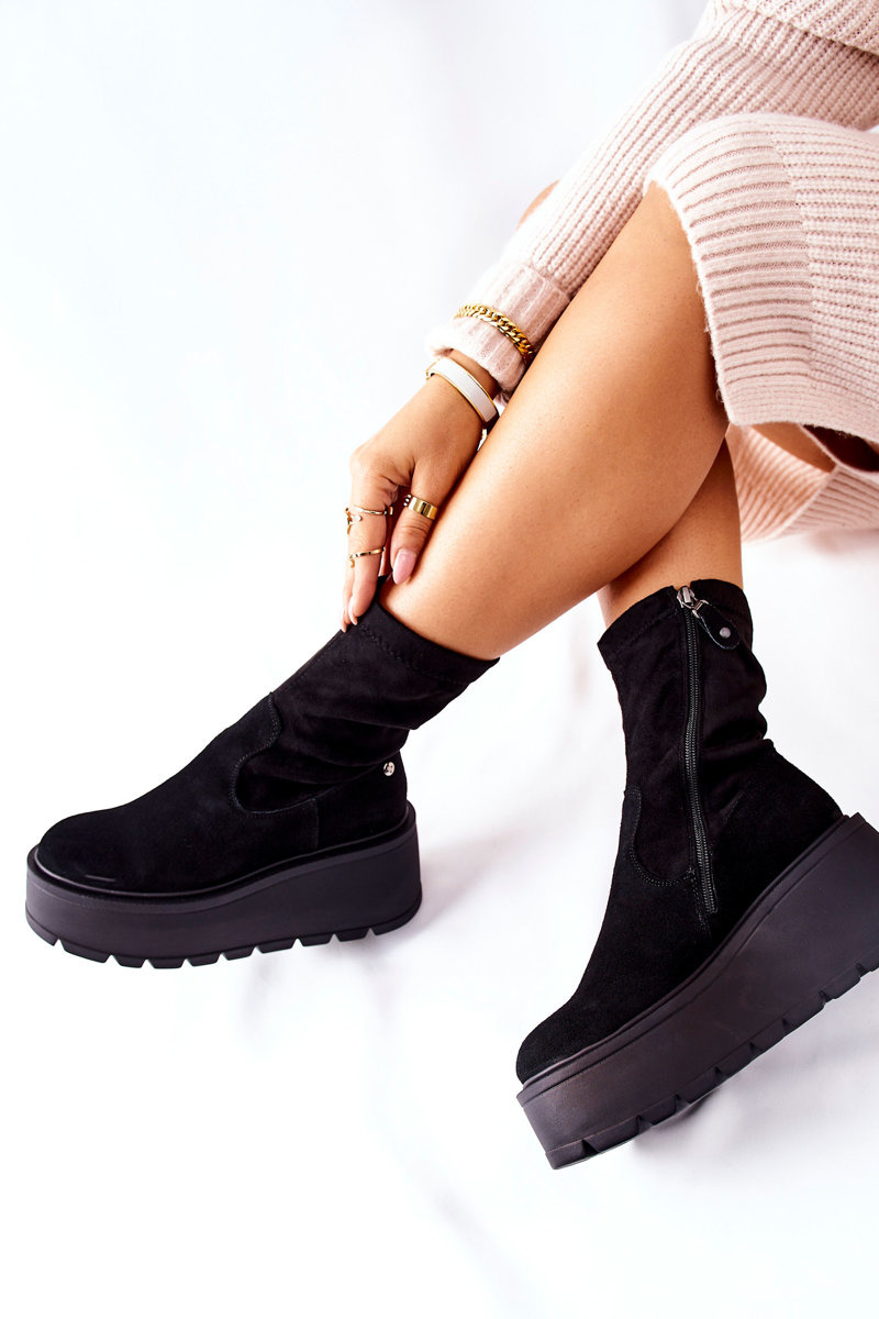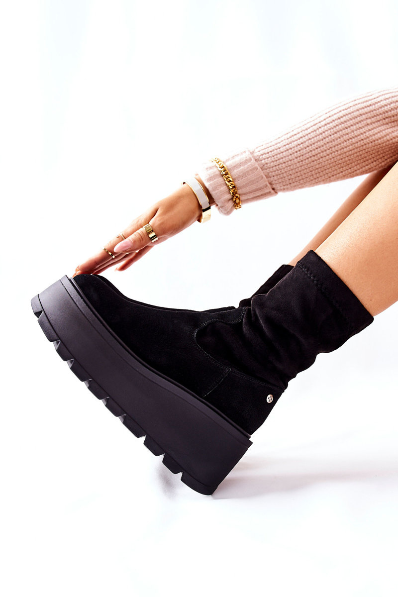 Suede Boots na čiernej platforme Maciejka 05319-01
