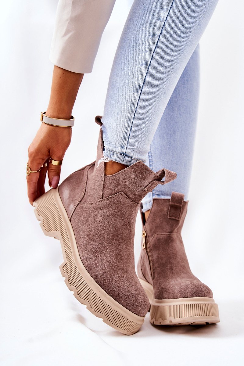 Boots produkované poľskou značkou Lewski Shoes. Vyrobené s pozornosťou na všetky detaily. Model je vyrobený z prírodnej semišovej kože. Kožená vložka a podošva nekričanie sú zárukou pohodlia. Pripevnené zo strany. Platforma zabezpečí stabilitu v každom kroku. Nezabudnite skontrolovať celú našu kolekciu topánok Lewski topánky! Pri výbere veľkosti navrhnite tabuľku veľkosti.