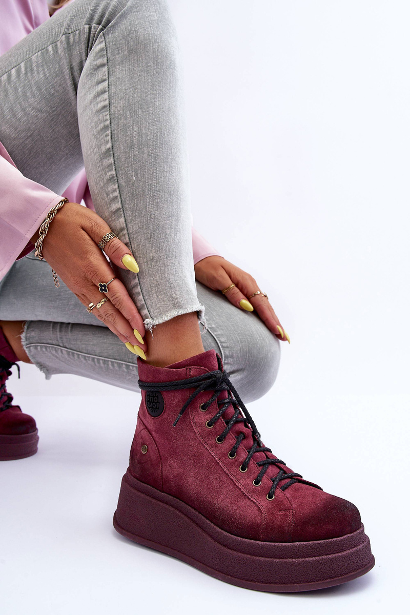 Suede topánky na masívnej platforme Maciejka 06309-23 Burgundsko
