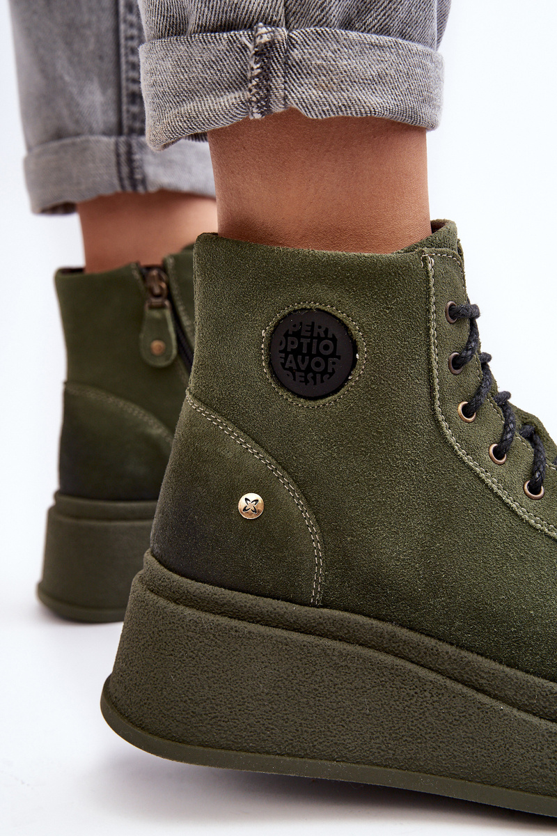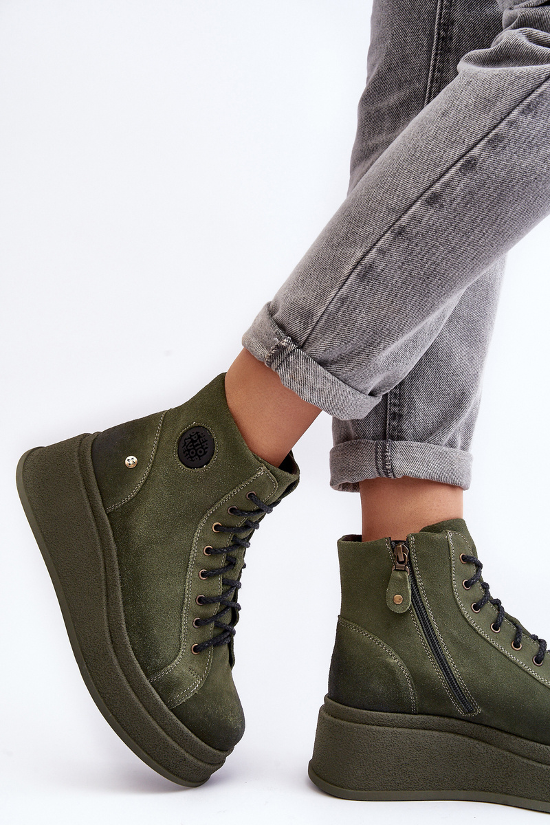 Suede topánky na masívnej platforme Maciejka 06309-24 Olive