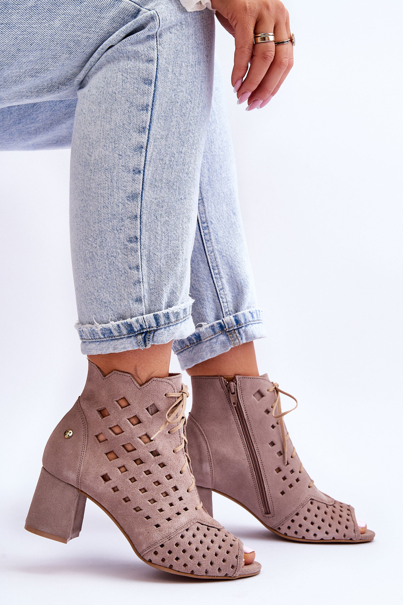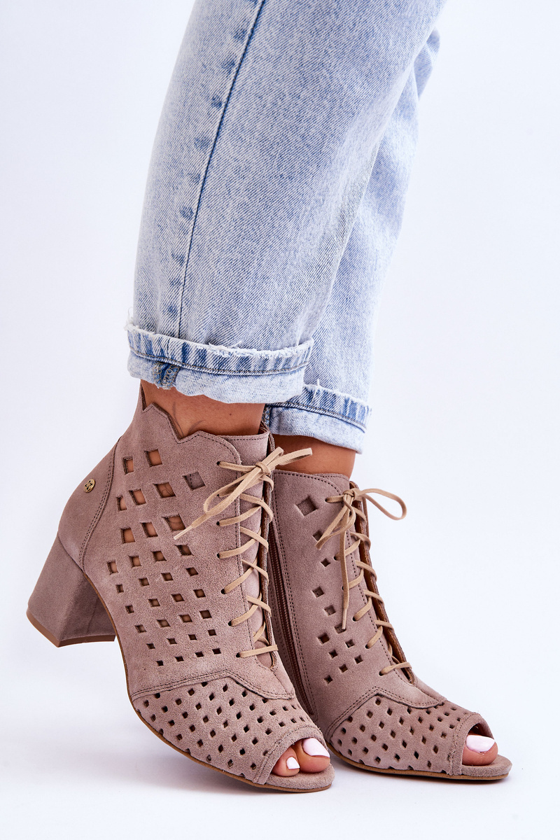 Suede topánky so vzorom Openwork Maciejka 05966-10 Dark Beige