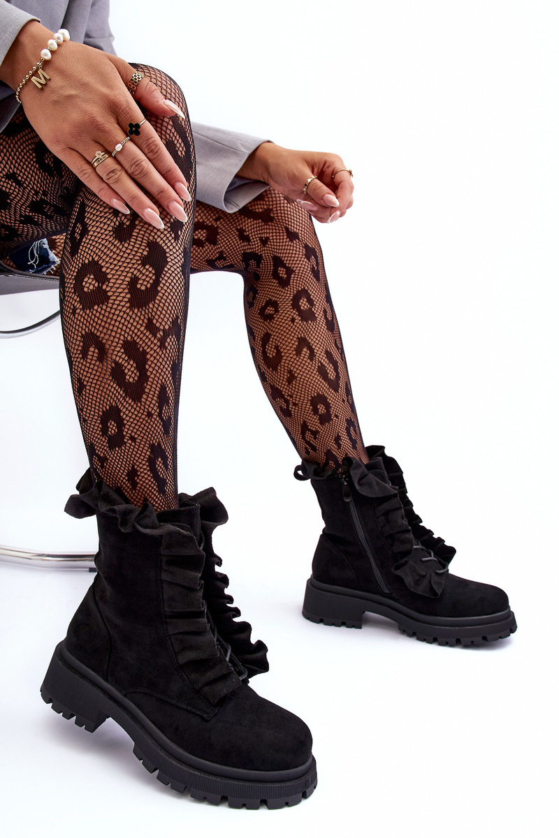 Pracovníci s plochou a platformou. Vyrobené z ekologického semišu, ktorý sa má dotknúť. Zvuk je orezaný ďalším, ochromeným materiálom. Model pripevnený posúvačom a dodatočne priviazaný. Interiér izolovaný prikrývkou obuvi. Stuhnutá päta. Pri výbere veľkosti navrhnite tabuľku veľkosti. /p>