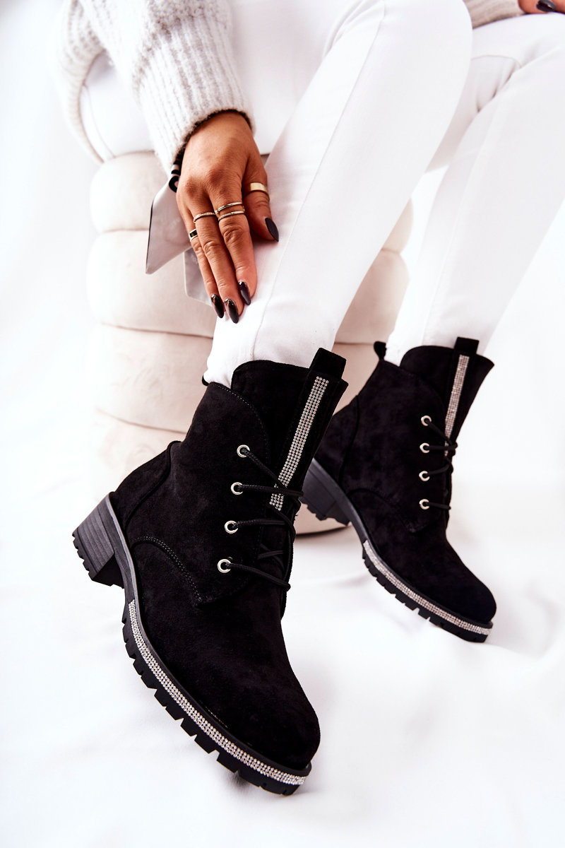 Elegantné topánky vyrobené zo semišovej ekologickej kože. Interiér je pokrytý teplou a príjemnou obuvou prikrývkou - zárukou pohodlia v každej situácii. Na jazyku a podrážke sú dekoratívne kamienky. Topánky sú zviazané. Nezabudnite sa pozrieť na celú našu ponuku topánok! Pri výbere veľkosti navrhnite tabuľku veľkosti.