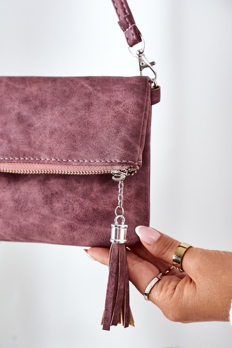 Taška na spojku s odnímateľným popruhom a ružovými strapcami