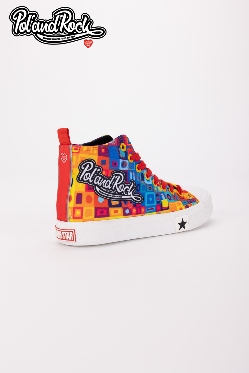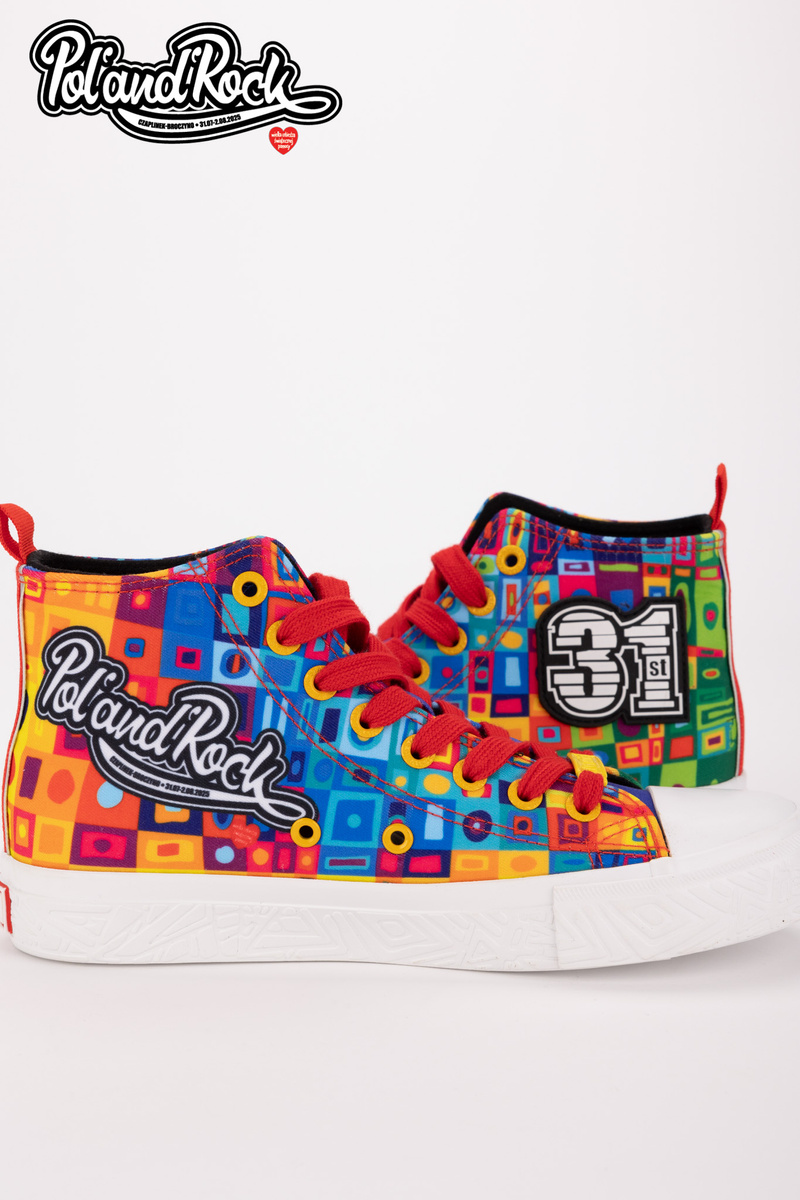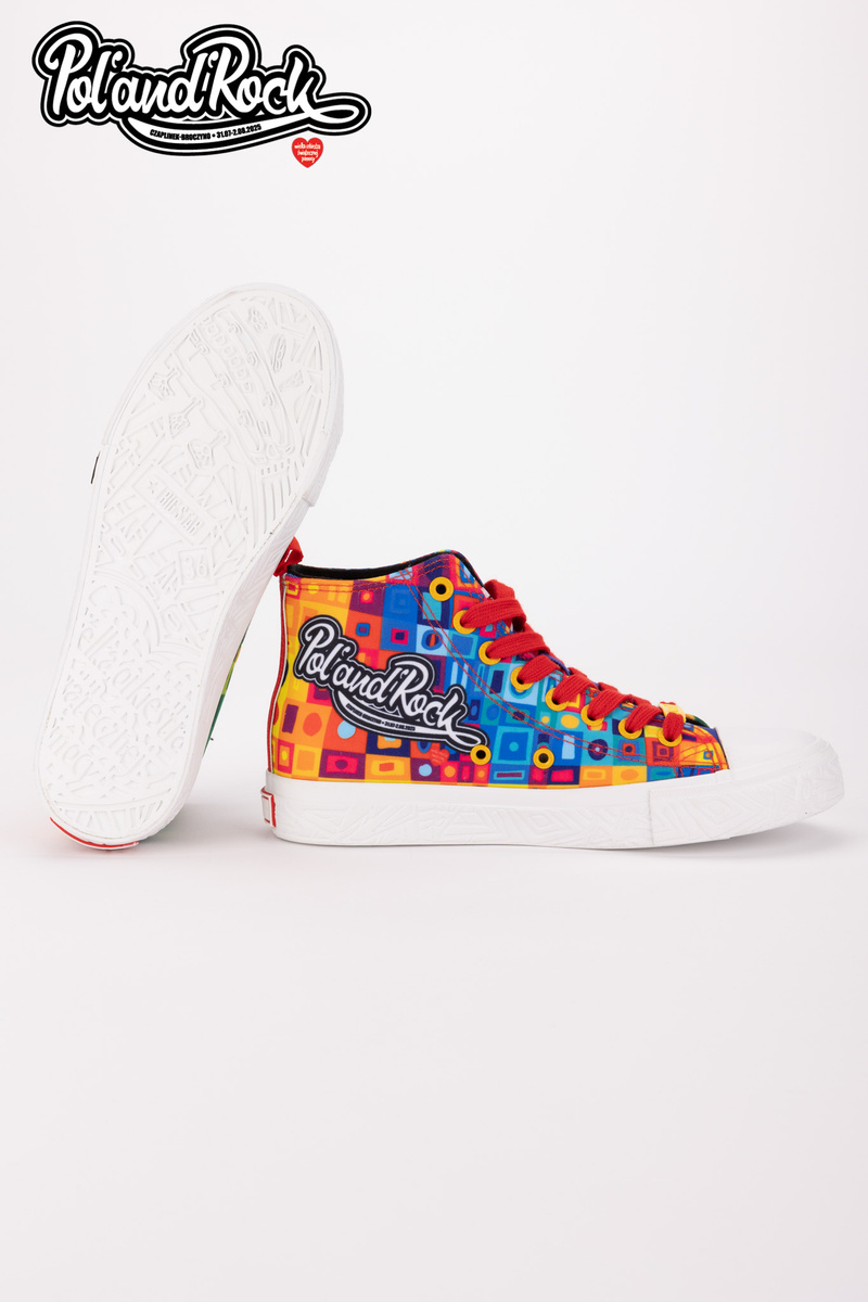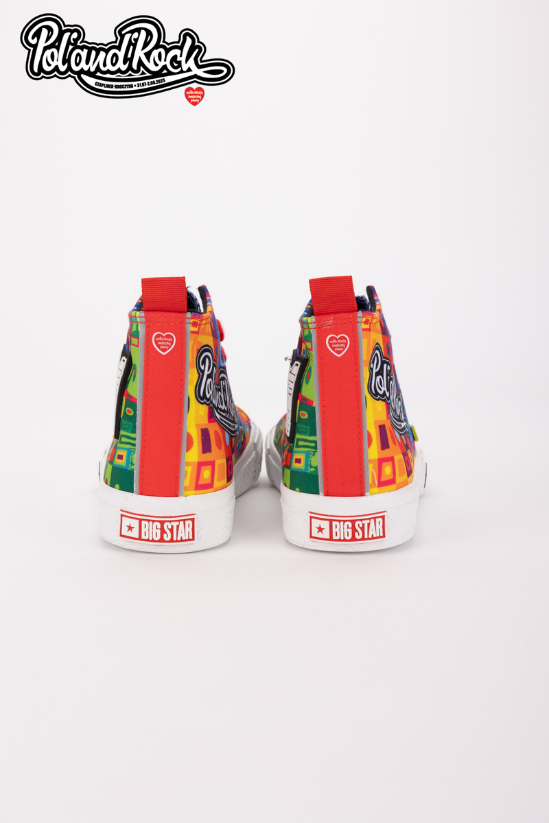 MODEL MOZAIKA Jedinečný vzhľad Model týchto topánok navrhol tím grafikov Jurka Owsiaka. Je to pravá explózia farieb a symbolov. Zelený, modrý a červený zvršok je pokrytý umeleckými vzormi, ktoré evokujú festivalové graffiti, spontánnosť a radosť. Na zadnej strane topánok sa nachádza červený pásik s bielym srdcom - subtílny, ale výstižný akcent, ktorý symbolizuje lásku k hudbe a ľuďom. Práve tieto hodnoty sú základom festivalu Poland’and’Rock a boli prenesené na každý centimeter tohto jedinečného modelu. Odolnosť a pohodlie Vyrobené z kvalitných materiálov, zaručujú pohodlie pri nosení počas celého dňa. Pevná gumová podrážka zaručuje vynikajúcu priľnavosť a ochranu nohy na nerovnom teréne, zatiaľ čo kvalitné materiály zabezpečujú trvanlivosť a odolnosť voči poškodeniu. Tenisky sú ľahké, pohodlné a ideálne na tanec pod pódiom, prechádzky po stanovom mestečku alebo jednoducho na každodenné nosenie s nádychom festivalovej pohody. Limitovaná edícia Jedinečnosť tenisiek Big Star Shoes robí z nich pravú raritu pre zberateľov a ľudí, ktorí sledujú najnovšie trendy. Pamiatka Tieto tenisky vám pomôžu uchovať spomienku na 31. ročník festivalu Pol’and’Rock na dlhú dobu. Festivalová fotografia s vašou polovičkou alebo priateľmi? Nezabudnite, že môžete spojiť sily a vybrať si jednotnú obuv pre všetkých účastníkov. Při výběru velikosti se řiďte tabulkou velikostí.