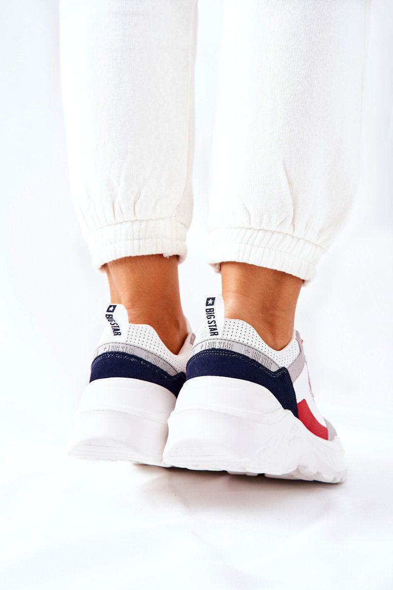 Dámske športové topánky z poľskej značky Big Star. Topánky na vrchu boli vyrobené zo semišovej a ekologickej kože. Agent vyrobený z textilného materiálu. Topánky majú podrážku. Tenisky majú vzadu dekoratívne logo Big Star. Nezabudnite skontrolovať našu kolekciu veľkých hviezd. Pri výbere veľkosti navrhnite tabuľku veľkosti.