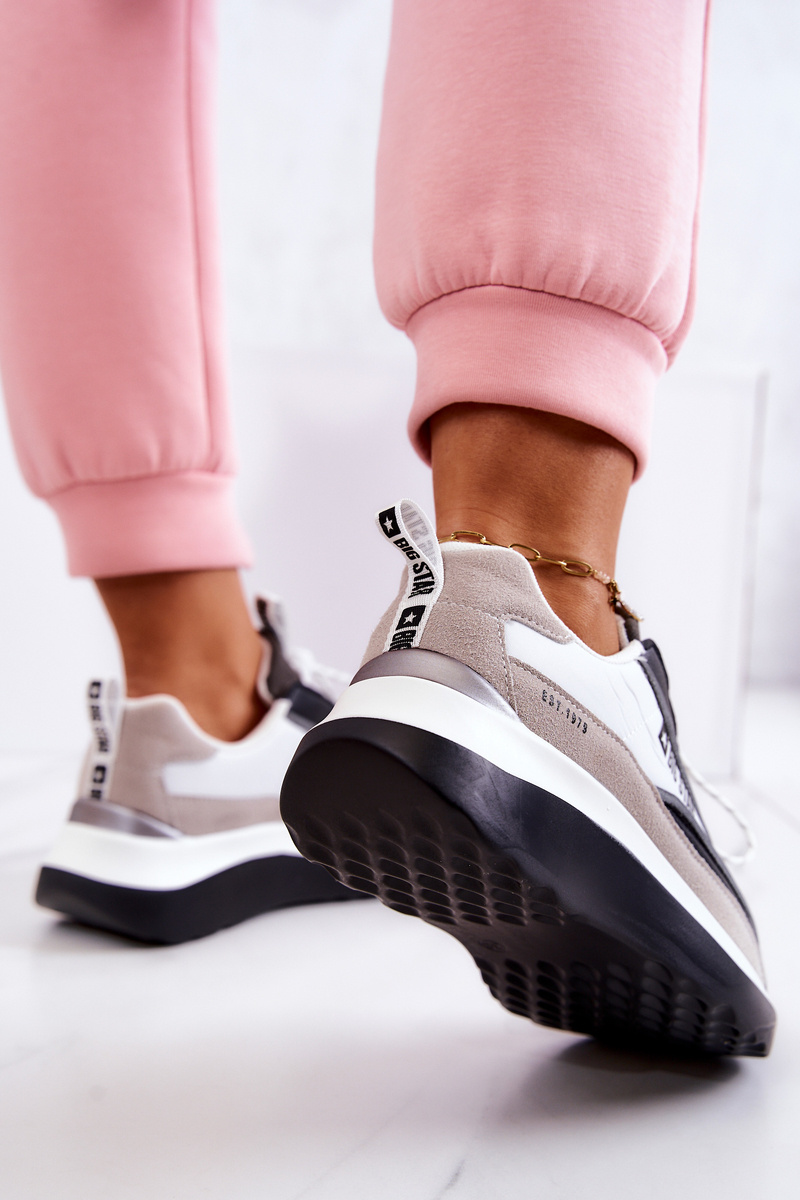 Unikátne dámske športové topánky od poľskej značky Big Star. Sú vyrobené z kombinácie ekologickej kože a látky. Tenisky sú neuveriteľne ľahké a pohodlné. Majú vložku pamäťového penového systému, ktorý si pamätá tvar chodidla, poskytuje perfektné prispôsobenie, absorbuje otrasy, je odolný voči deformácii a umožňuje vám odpariť vlhkosť a upraviť teplotu. Vysoká plošina izoluje zo zeme. Pri výbere veľkosti navrhnite tabuľku veľkosti.
