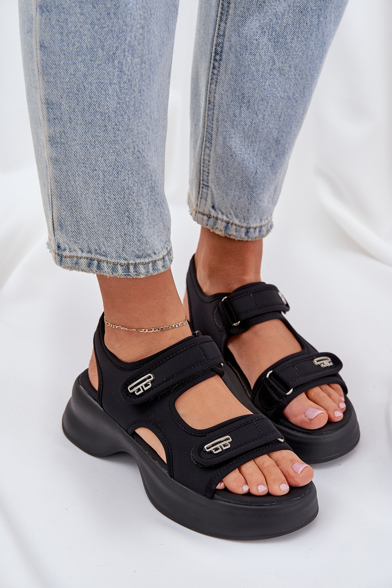 Textilné Ľahké Sandále Na Platforme Čierne Deniffia
